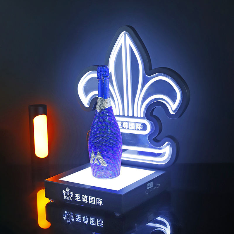 กล่องใส่ขวดแชมเปญพร้อมไฟ LED หรูหราออกแบบได้ตามต้องการกล่องโชว์ขวดแบบเดี่ยวบริการวีไอพีเคสสำหรับบาร์ไนท์คลับ