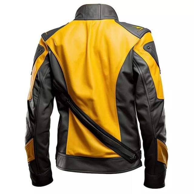 เสื้อแจ็กเก็ตสำหรับผู้ชายผ้าหนังแกะแท้สีเหลืองและดำเสื้อกีฬาสไตล์นักขี่จักรยานกันน้ำออกแบบได้ตามต้องการ