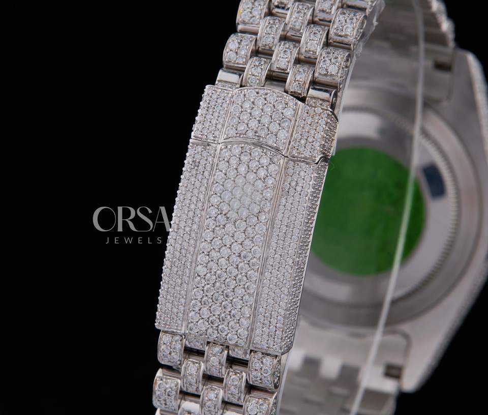 นาฬิกาผู้ชายแบบกำหนดเองใบหน้าสีเขียวสไตล์ออกเย็นหน้า Moissanite