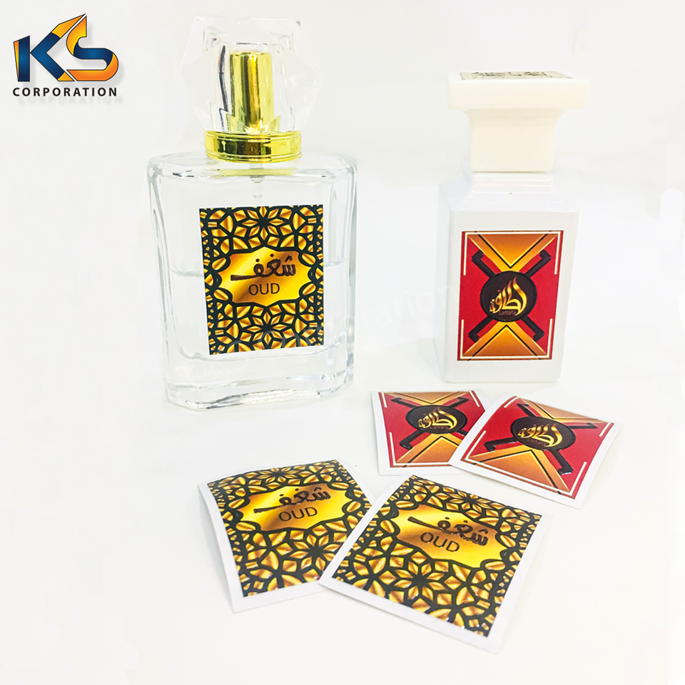 สติกเกอร์โลหะสำหรับติดขวดน้ำหอมดีไซน์นูนเกรดพรีเมี่ยมสำหรับบรรจุภัณฑ์และการพิมพ์