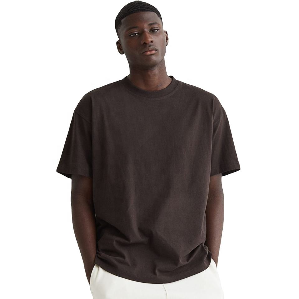 เสื้อยืดผ้าฝ้ายถักแขนสั้นสีทึบสำหรับผู้ชายผ้า100% ขนาดใหญ่หรูหราออกแบบได้ตามต้องการ
