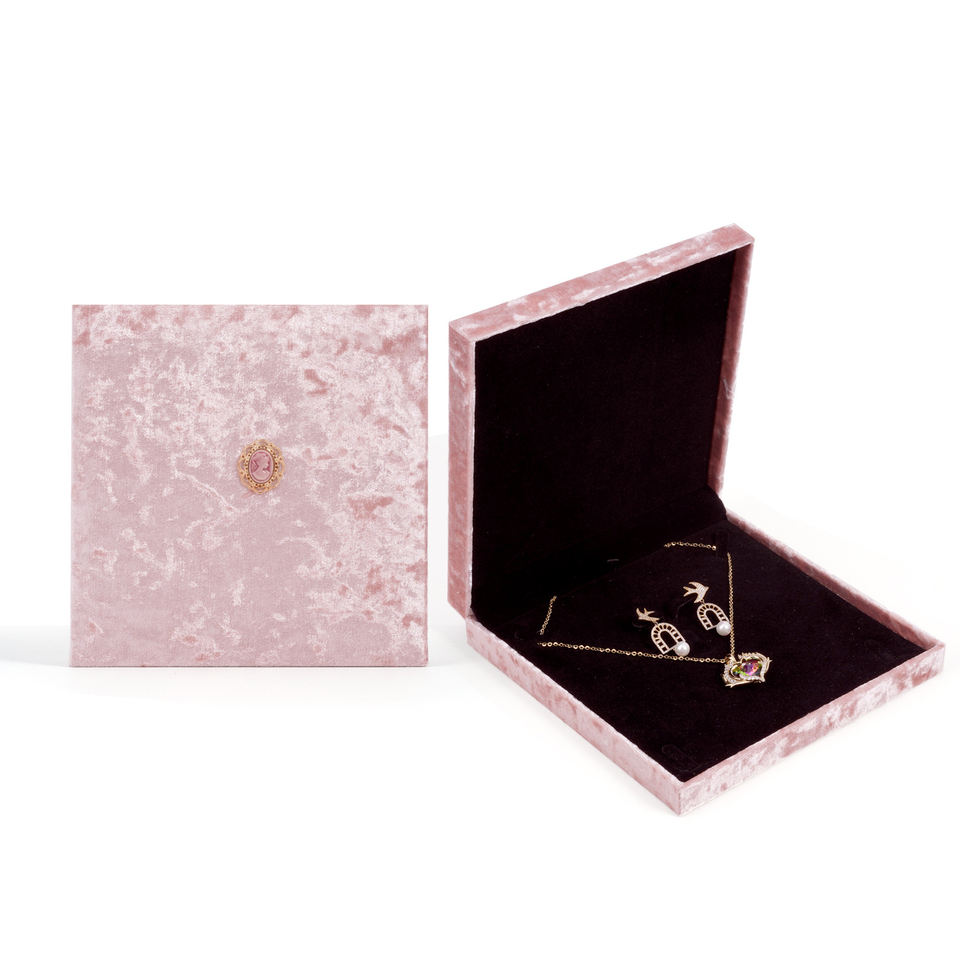 กล่องเครื่องประดับสีชมพูย้อนยุคกำมะหยี่หรูหราชื่อผลิตภัณฑ์