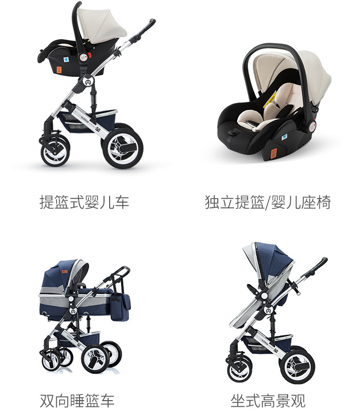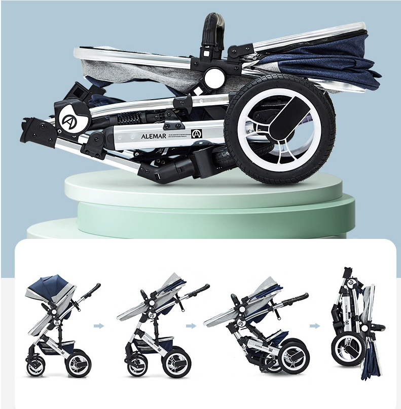 รถเข็นเด็กแบบปรับได้ 3 in 1 สำหรับทุกสภาพพื้นผิว พร้อมเบาะนั่งในรถ ล้อขนาดใหญ่ ดีไซน์หรูหรา พับเก็บได้