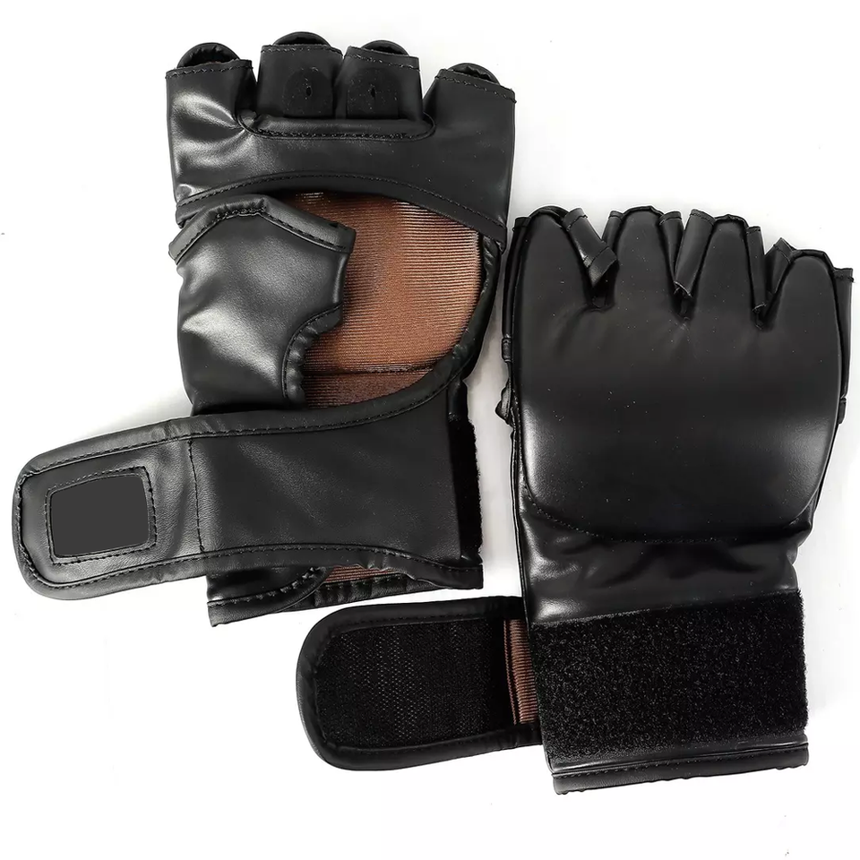 ถุงมือชกมวย MMA แบบครึ่งนิ้ว สำหรับผู้ใหญ่ ฝึกซ้อม ระบายอากาศ น้ำหนักเบา ผลิตจาก PU พร้อมสายรัด