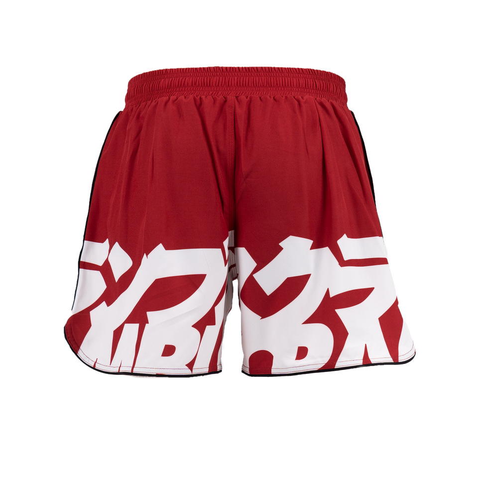 กางเกงชกมวย MMA แบบสั่งทำพิเศษ ทนทานสำหรับการฝึกซ้อมและการต่อสู้ สำหรับผู้ชาย สีแดงและขาว ลายเท็กซ์เจอร์ | ชุดศิลปะการต่อสู้ มวย และชุดออกกำลังกาย