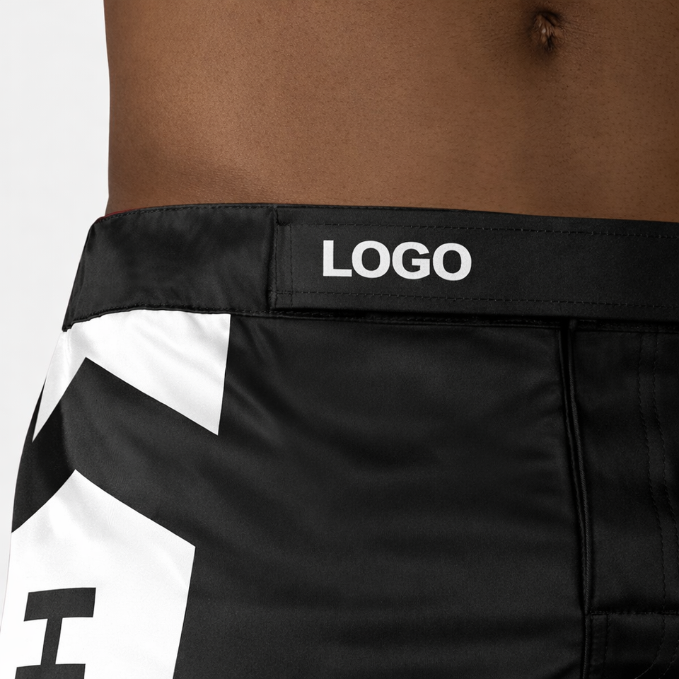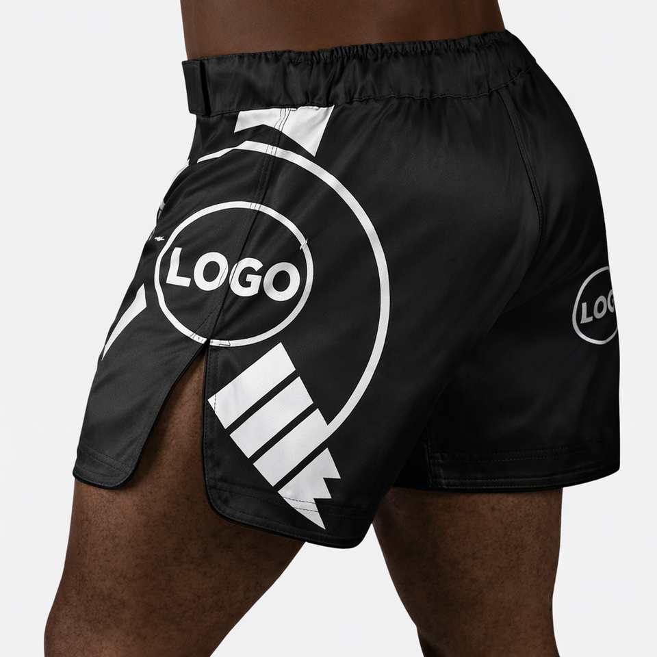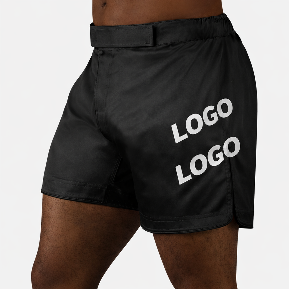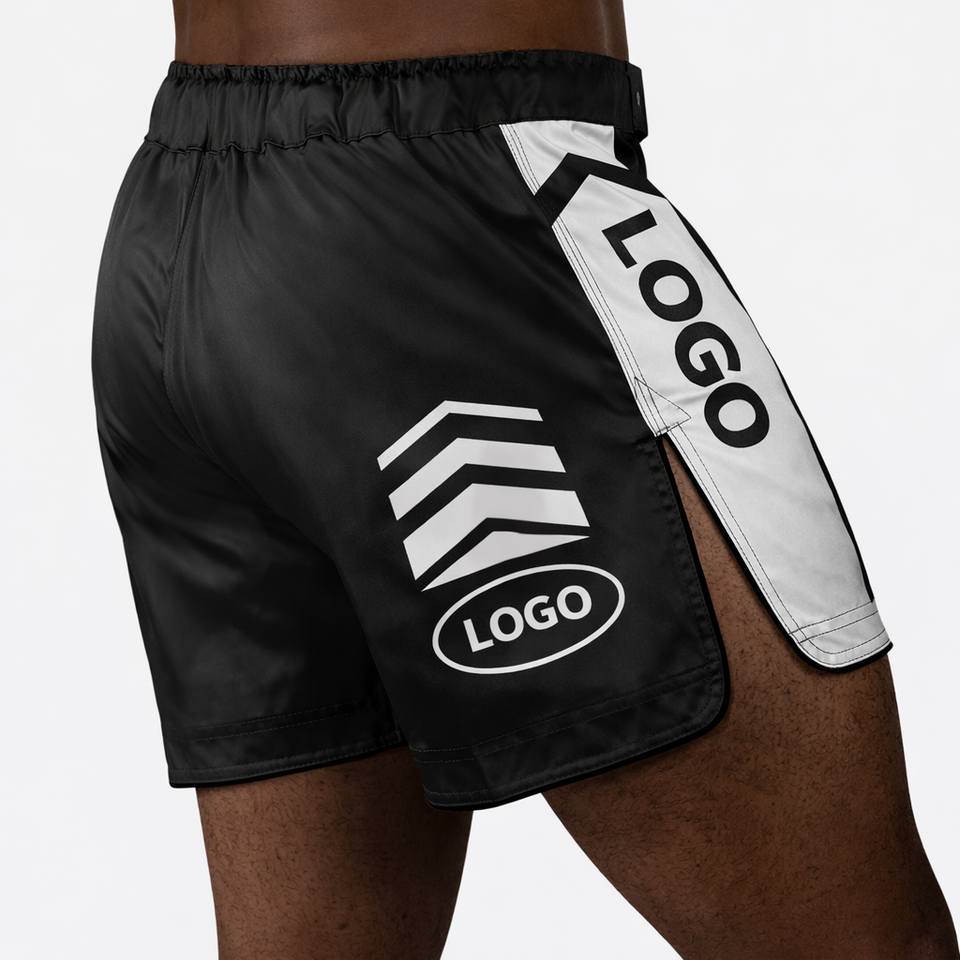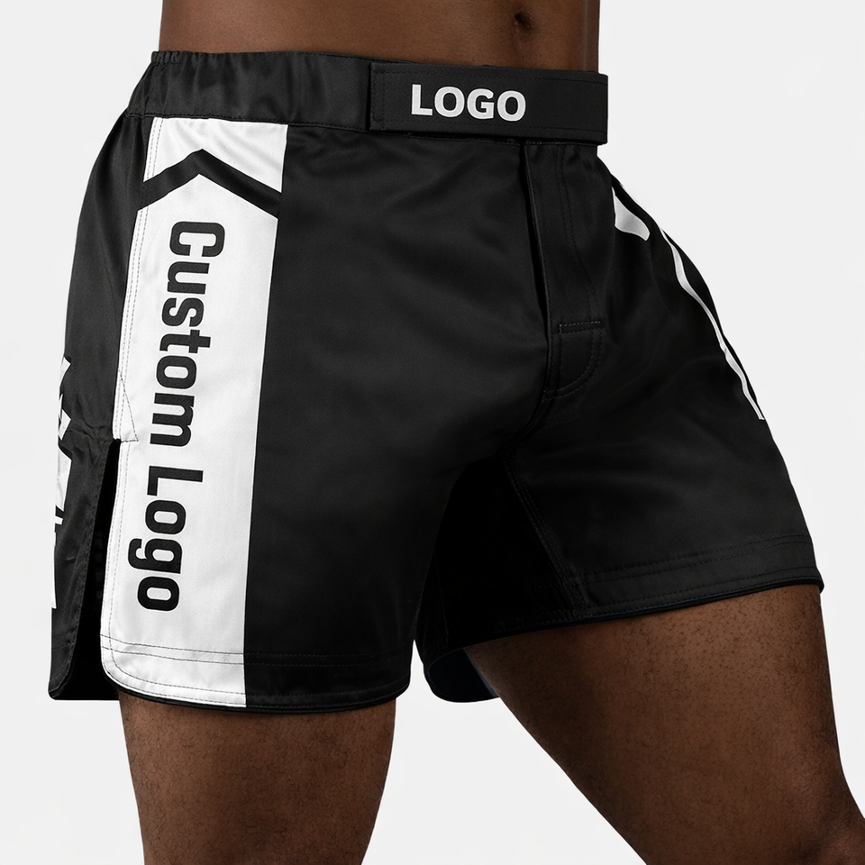 กางเกงชกมวย MMA แบบสั่งทำพิเศษ ความยาวครึ่งต้นขา แบบไฮบริด สำหรับคิกบ็อกซิ่ง มวยไทย ผ้าสเตรช สำหรับการฝึกซ้อมและการต่อสู้ในยิม ผลิตโดยผู้ผลิต OEM