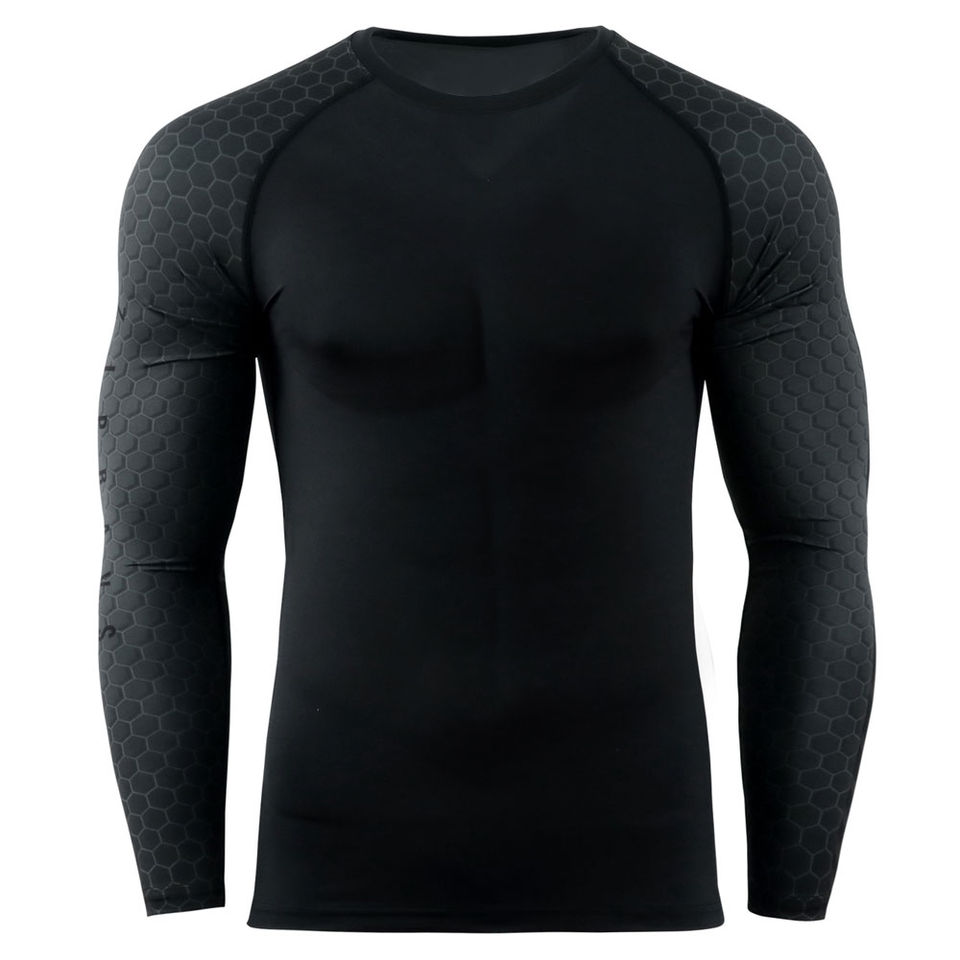 เสื้อรัดกล้ามเนื้อ MMA แขนยาวแบบกำหนดเอง สำหรับกีฬากราปลิง รับผลิตแบบ OEM แบรนด์ส่วนตัว ผลิตจากโพลีเอสเตอร์ 100% เป็นมิตรต่อสิ่งแวดล้อม