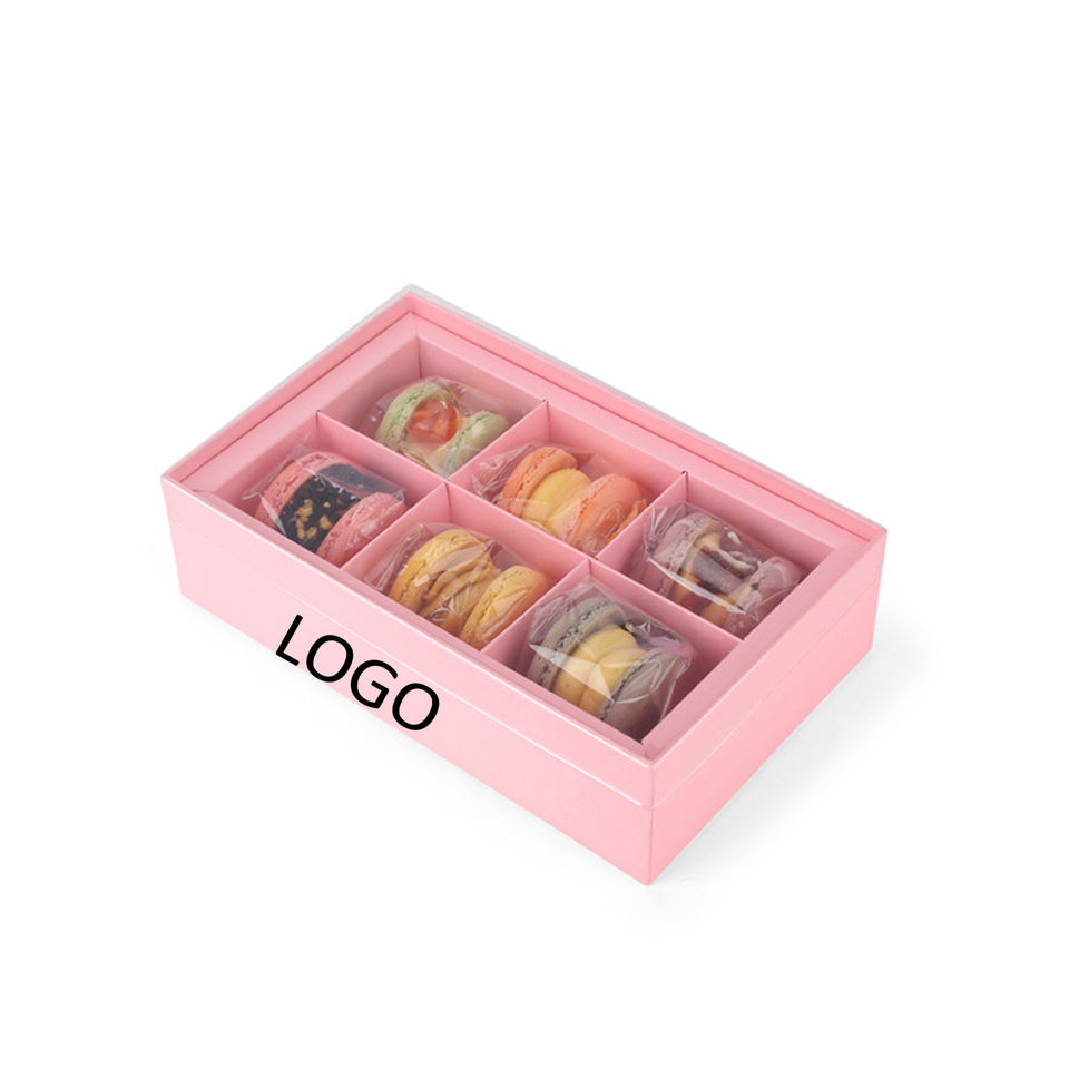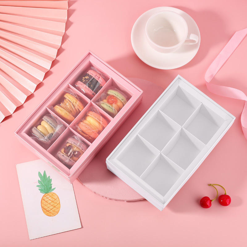 กล่องคุกกี้บิสกิตมาการองแบบกำหนดเอง กล่องบรรจุภัณฑ์คุกกี้ทรงสี่เหลี่ยมพับได้ ย่อยสลายได้ ผิวด้าน พร้อมช่องใส