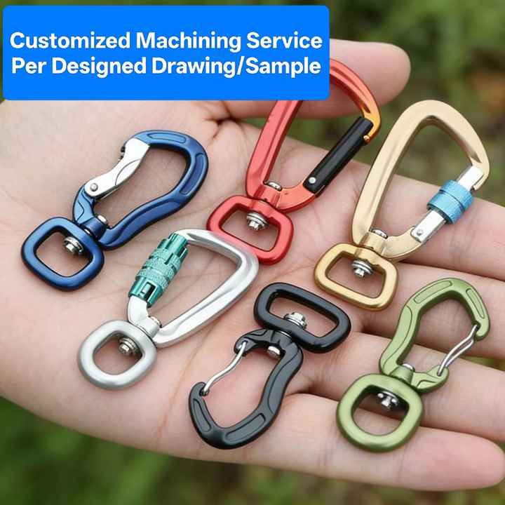 คาราไบเนอร์อลูมิเนียมแบบหมุนล็อคได้ ผลิตตามสั่ง พร้อมตัวล็อคแบบหมุนสำหรับสายจูงสุนัข