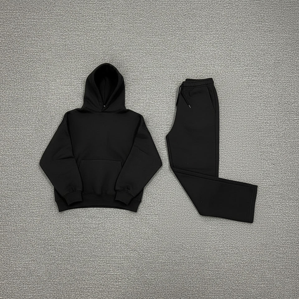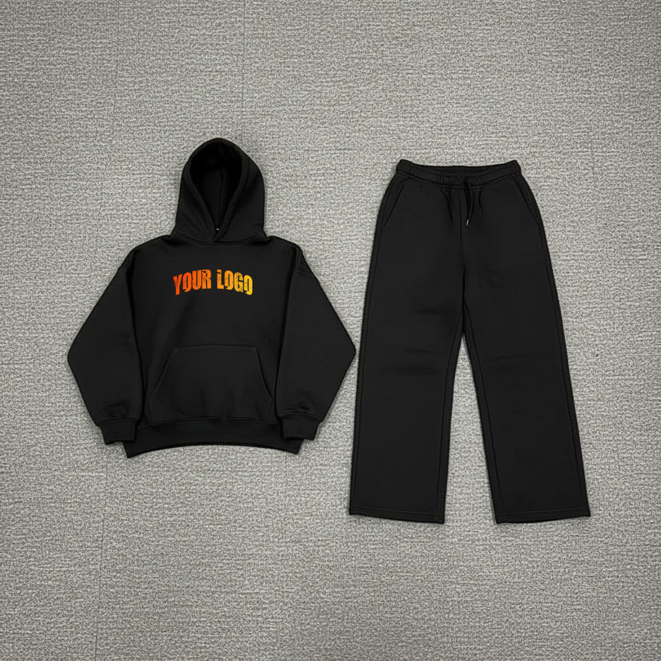 ชุดวอร์มผู้หญิงผ้าฝ้ายแท้ 100% หนัก 300 GSM แบบสวมหัว สีพื้น สำหรับฤดูหนาว ชุด 2 ชิ้น พร้อมลูกไม้และโลโก้สกรีนตามสั่ง