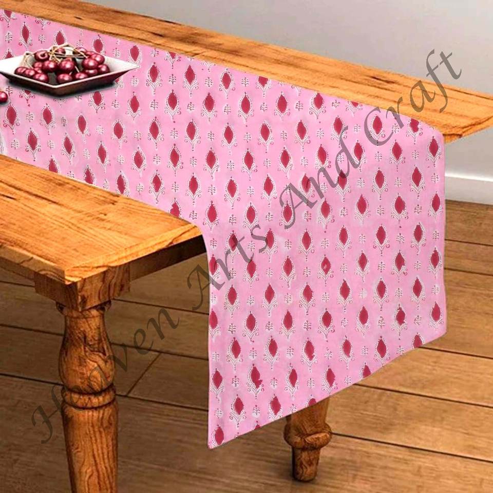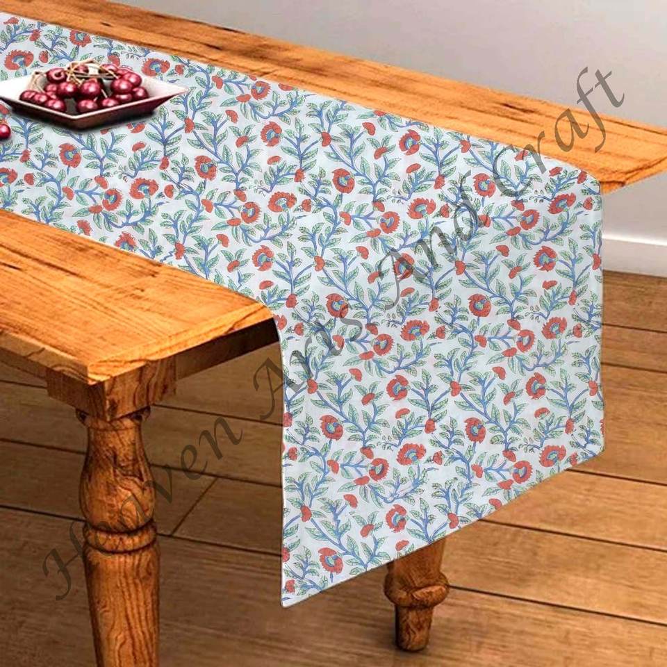 ผ้าคาดโต๊ะพิมพ์ลายบล็อกด้วยมือทำจากผ้าฝ้าย100% สำหรับบ้านและโรงแรมดีไซน์ดอกไม้สวยงามสำหรับงานแต่งงาน