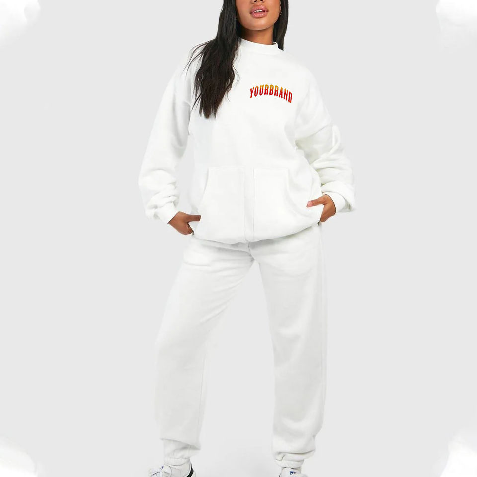 ชุดวอร์มผู้หญิงไซส์ใหญ่ ผ้าคอตตอน 100% ตัดเย็บตามสั่ง ทรงหลวม ไหล่ตก สำหรับฤดูหนาว น้ำหนักผ้า 220 กรัม พิมพ์ลายโลโก้ด้วยเทคนิค DTF แบบชุดคู่