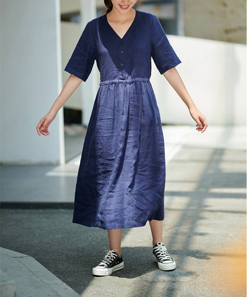 Product Name:Linen Midi Dress Long Sleeve Dress