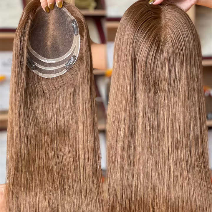สั่งทำพิเศษขนาด 20 นิ้ว # ท็อปเปอร์ผมผู้หญิงสีน้ำตาล 4 ชิ้น ขนาด 6x6.5 นิ้ว แบบ HD Lace ผมแท้ยุโรป เนื้อผมตรงสลวย พร้อมส่ง
