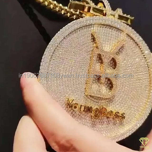จี้925สีเงินทำมือสไตล์ฮิปฮอปทำมือทำจาก925โรเดียมประดับเพชรสำหรับปลูกในแล็บ