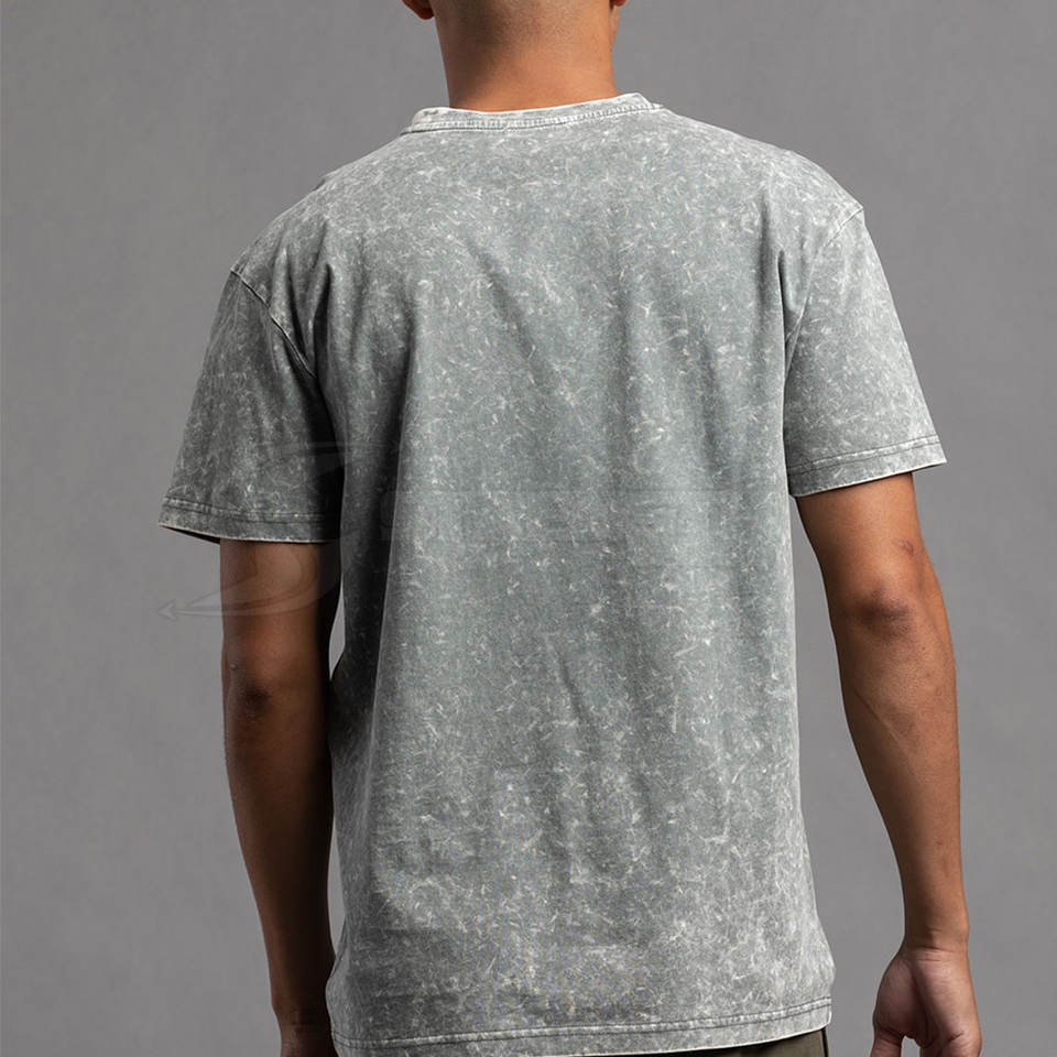 เสื้อยืดผู้ชายผ้ายีนส์ฟอกสีแบบสั่งทำพิเศษ