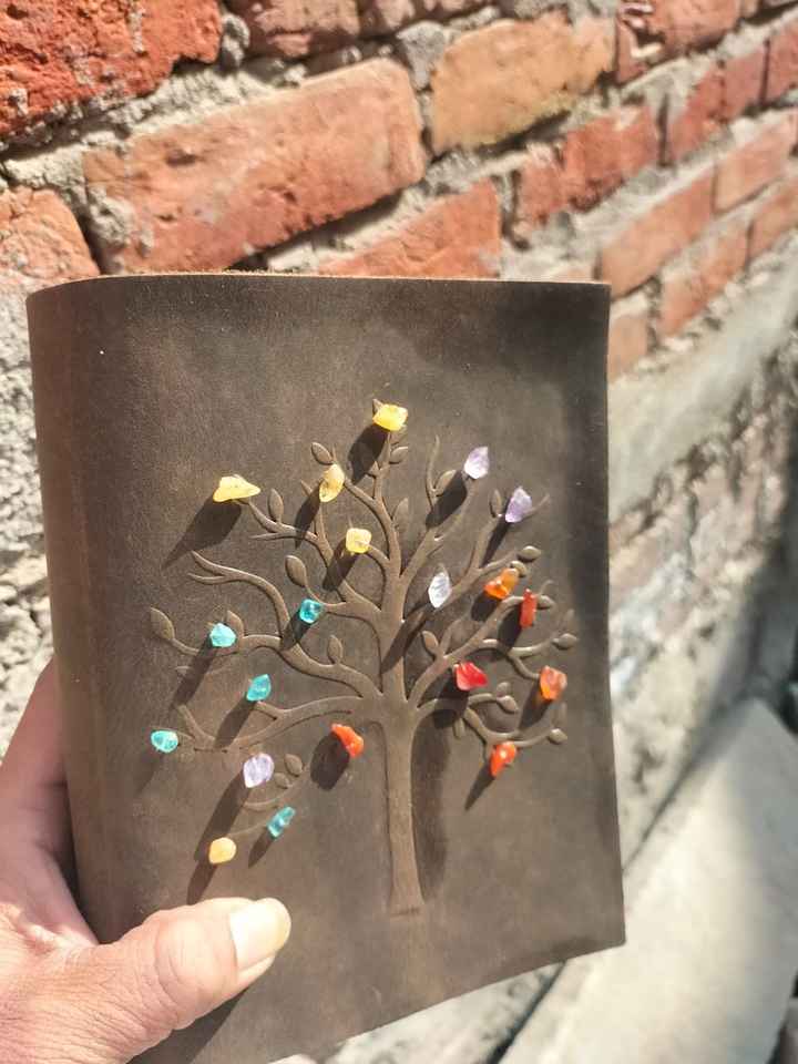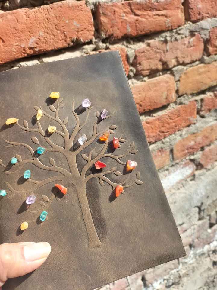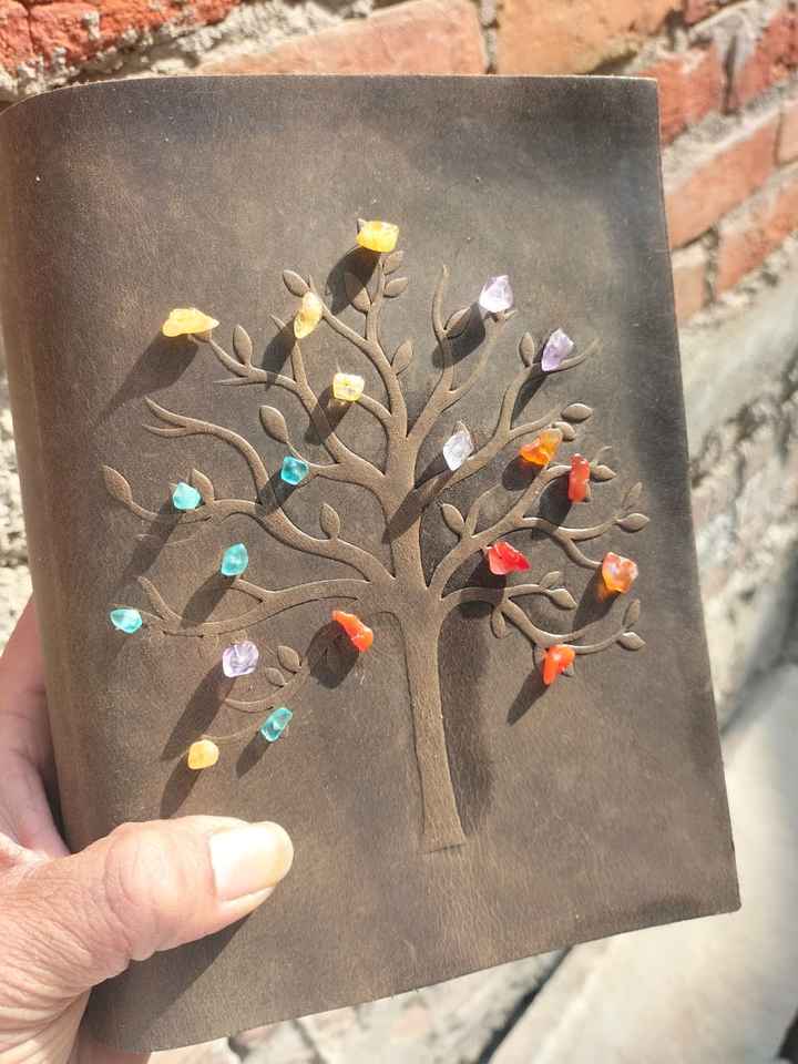 ต้นไม้อาเกตของวารสารหนังชีวิตที่มีชิปอัญมณีผสมผสานกับงานฝีมือตามสั่งเหมาะสำหรับการเขียนบันทึกการร่างภาพ