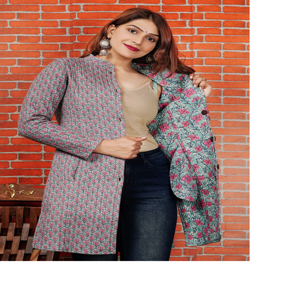ผ้าชีฟองพิมพ์ลายเสือดาวแบบกลับด้านได้ ผลิตตามสั่ง ใหม่เอี่ยม ลายพิมพ์ด้วยมือแบบเจียปุรี แขนยาว ใช้เป็นผ้าคาดลำตัวได้ ซักได้