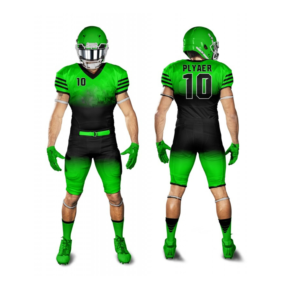 ชุดยูนิฟอร์มอเมริกันฟุตบอลสั่งทำพิเศษ คุณภาพสูง โพลีเอสเตอร์ 100% แขนสั้น ป้องกันแบคทีเรีย พิมพ์ลายแบบซับลิเมชั่น ราคาสมเหตุสมผล