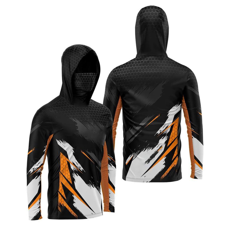 เสื้อตกปลามีฮู้ดเสื้อตกปลาแห้งเร็วสำหรับใส่กลางแจ้งเสื้อตกปลาแขนยาวพิมพ์ซับลิเมชันป้องกันรังสียูวีออกแบบได้ตามต้องการ