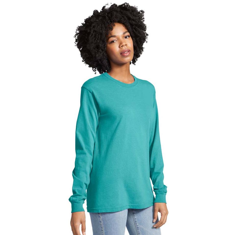 เสื้อยืดคอกลมแขนยาวผ้าผสมพรีเมียมสำหรับผู้หญิงสั่งตัดพิเศษ