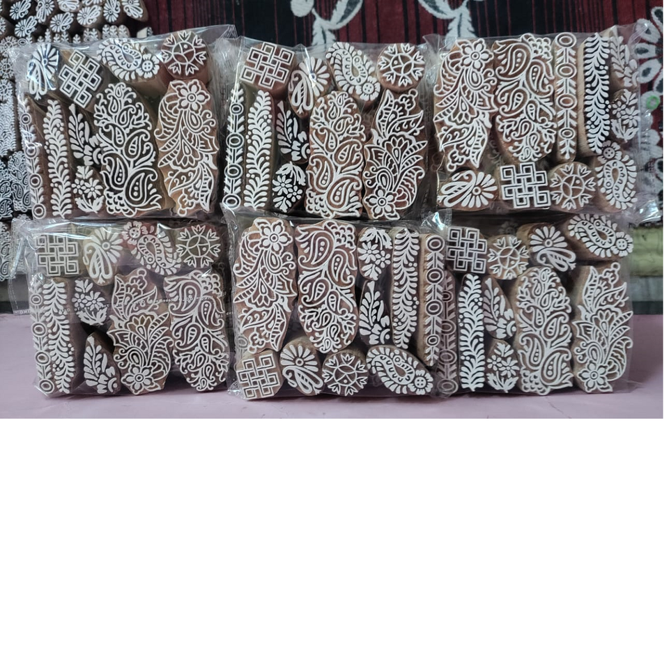 บล็อกการพิมพ์ทำจากไม้ในถุง10ชิ้นเหมาะสำหรับการพิมพ์เฮนน่าและเหมาะสำหรับงานฝีมือที่ขายต่อ