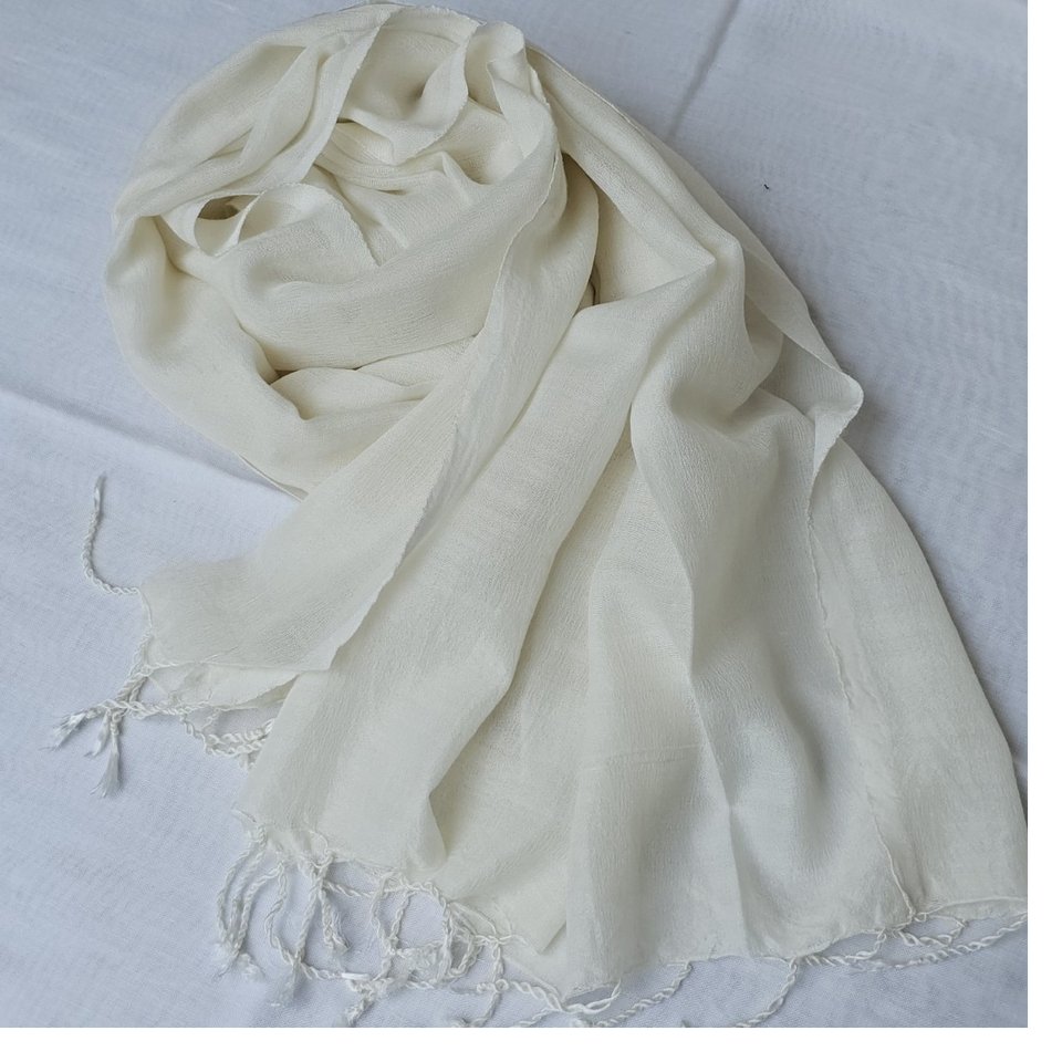 ผ้าพันคอผสมทำจากไม้ไผ่ (45%) ผ้าแคชเมียร์ (55%) ขนาด70ซม. X 200ซม. และขอบ95กรัมต่อชิ้นเพื่อการขายต่อชิ้น