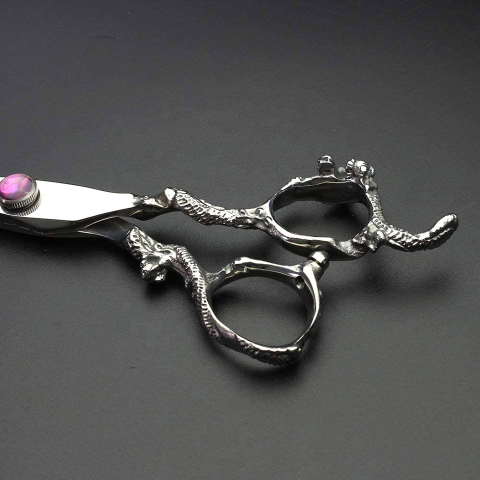 กรรไกรช่างตัดผมแบบสั่งทำด้ามจับมังกรที่ดีที่สุดตัดผมกรรไกรเสร็จสแตนเลสรวมถึงกระเป๋าหนัง PU