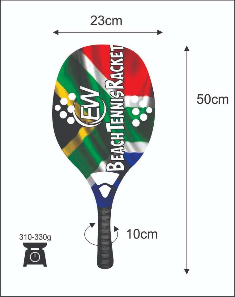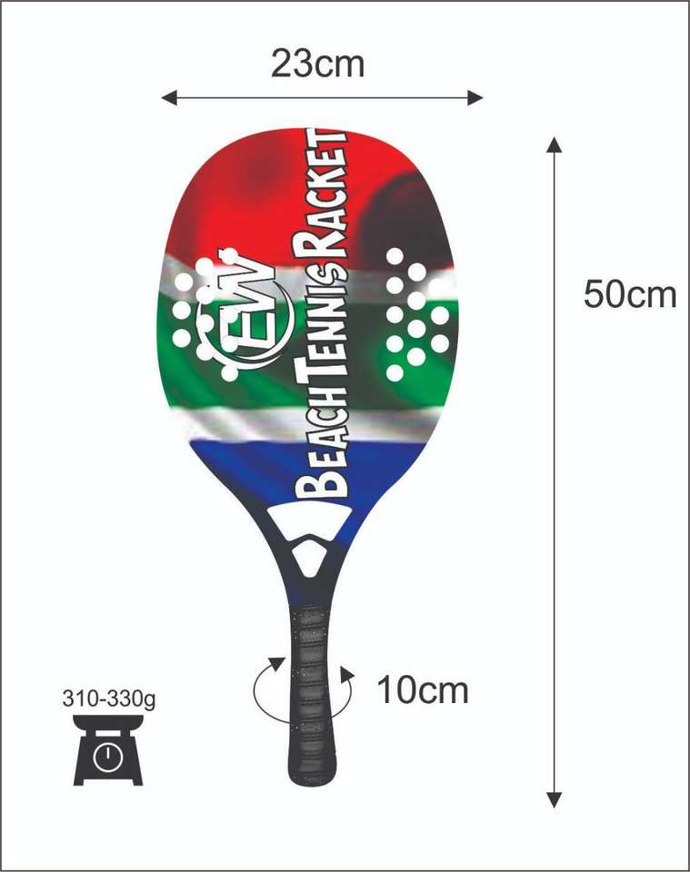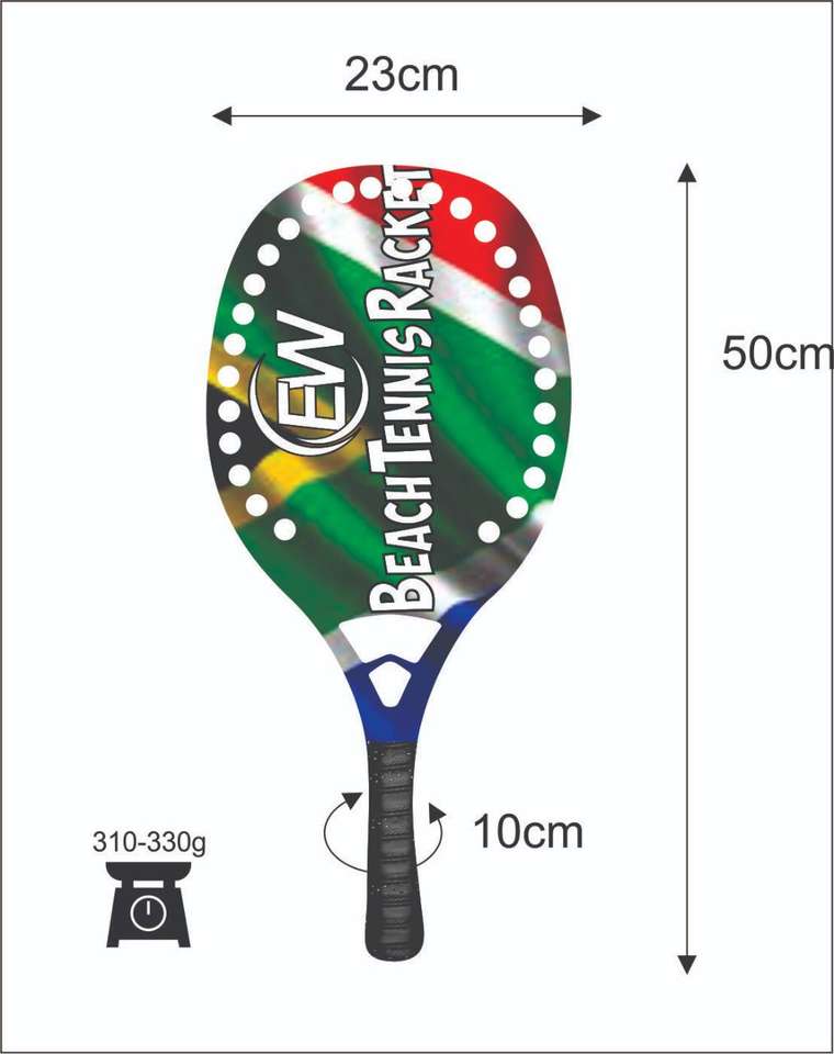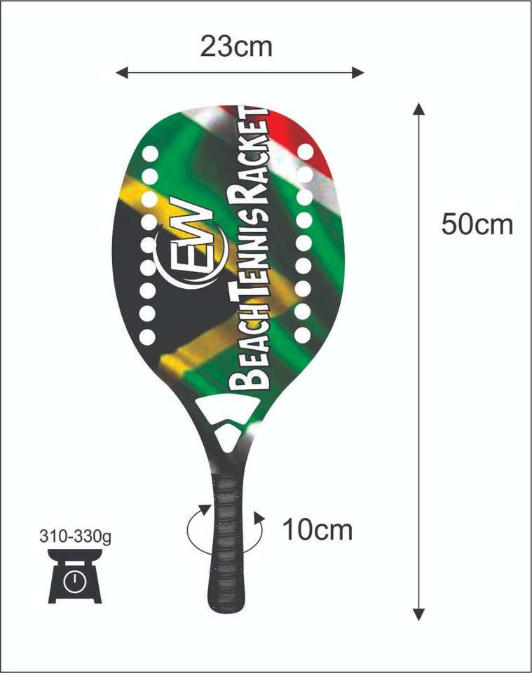 ไม้เทนนิสชายหาดแบบสั่งทำพิเศษ และไม้แพดเดิล/ไม้พาเดล พร้อมโลโก้คาร์บอนไฟเบอร์ผสมใยแก้ว ชุดสีต่างๆ น้ำหนัก 310-330 กรัม ความยาว 50 ซม.