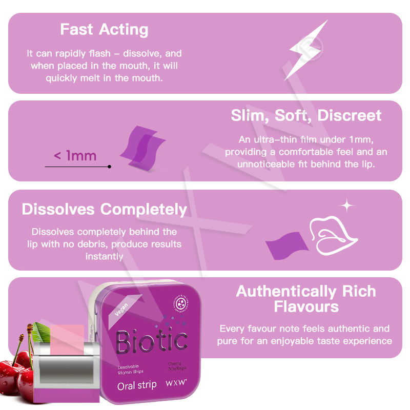 แถบชีวภาพอาหารเสริมเพื่อสุขภาพแถบละลายในช่องปากผลิตภัณฑ์เสริมความงาม