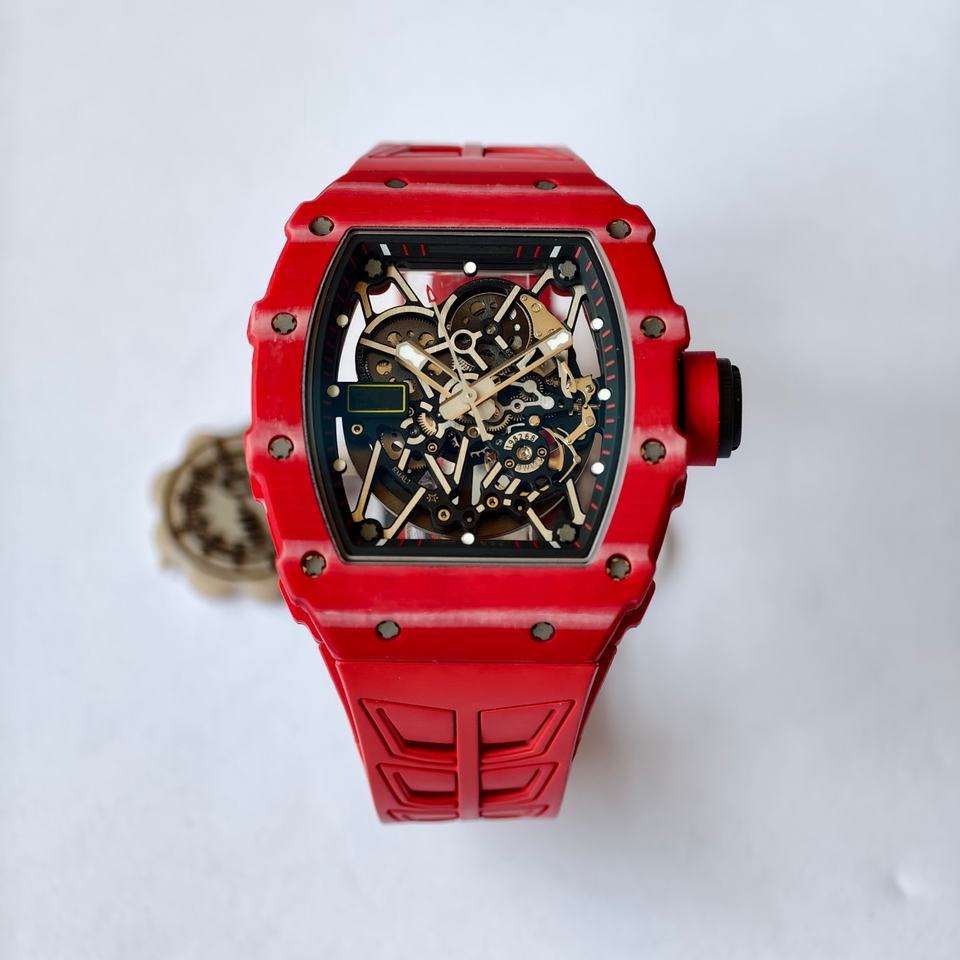นาฬิกาข้อมือจักรกลสี่เหลี่ยมสุดหรูสั่งทำพิเศษคุณภาพดีที่สุด ขนาด 43 มม. หน้าปัดคริสตัลแซฟไฟร์แบบโปร่งใส กลไก RMAL1 รุ่น RM035-02 ตัวเรือนโลหะผสมสีแดง