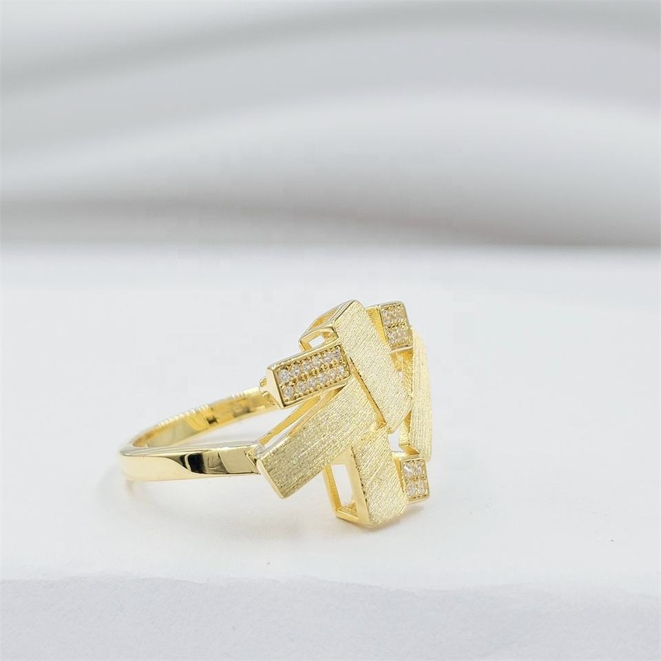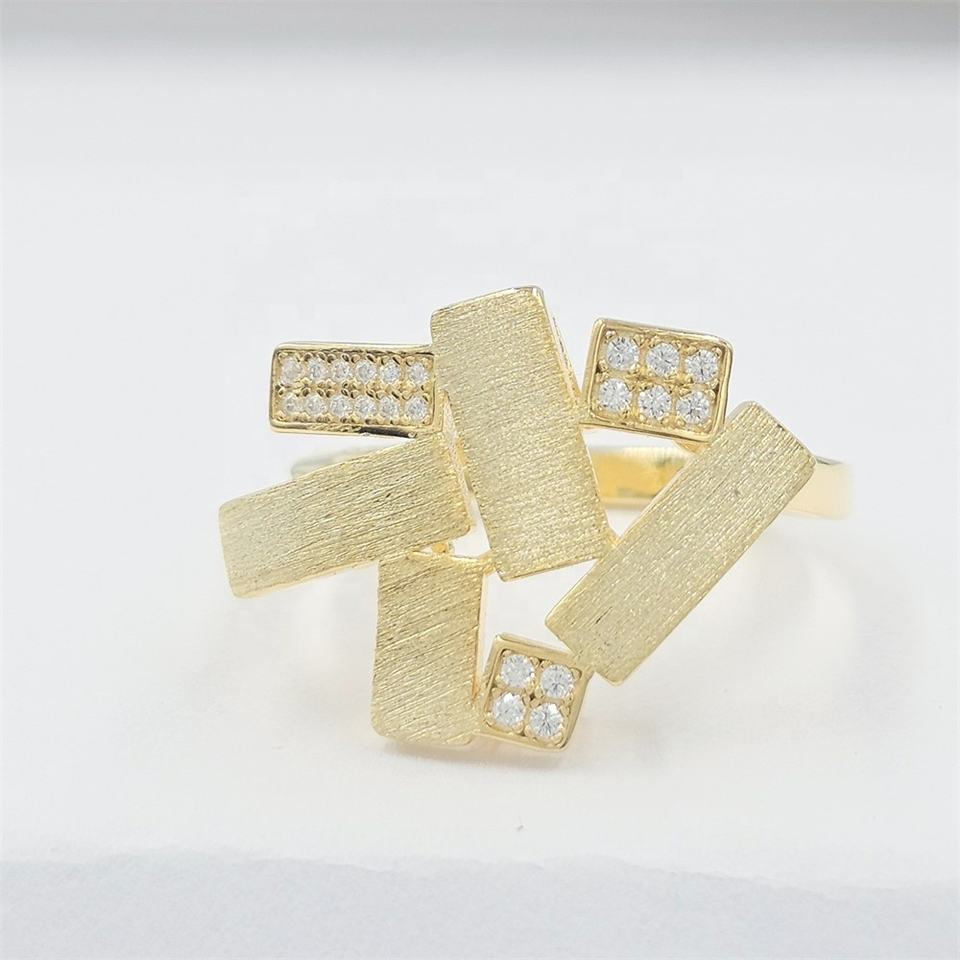 แหวนค็อกเทลเงินแท้ชุบทอง 18K ประดับเพชรซิคอน ดีไซน์ทันสมัย ขนาดใหญ่ ผลิตตามสั่ง พร้อมผิวสัมผัสแบบด้านซาติน สำหรับผู้หญิง