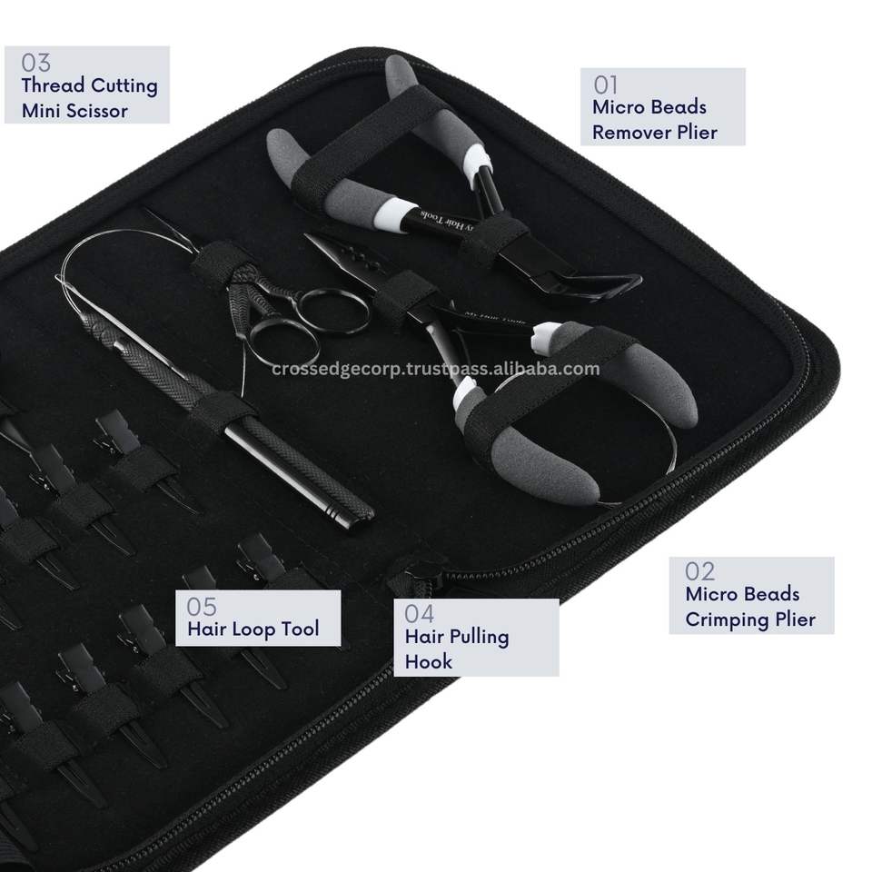 ชุดเครื่องมือต่อผมสีดำชุดเข็มเย็บ12ชิ้นคลิปผมกำจัดลูกปัดและคีมหนีบลูกปัดห่วงเครื่องมือถักเปีย
