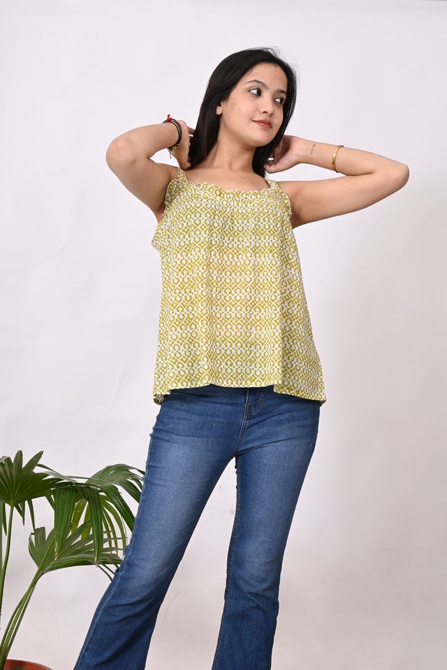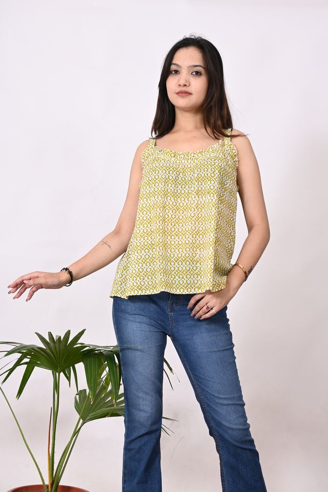 เสื้อแขนกุดพิมพ์ลายบล็อกสำหรับผู้หญิงเสื้อผ้าฝ้ายลำลองพิมพ์ลายเสื้อท่อนบน