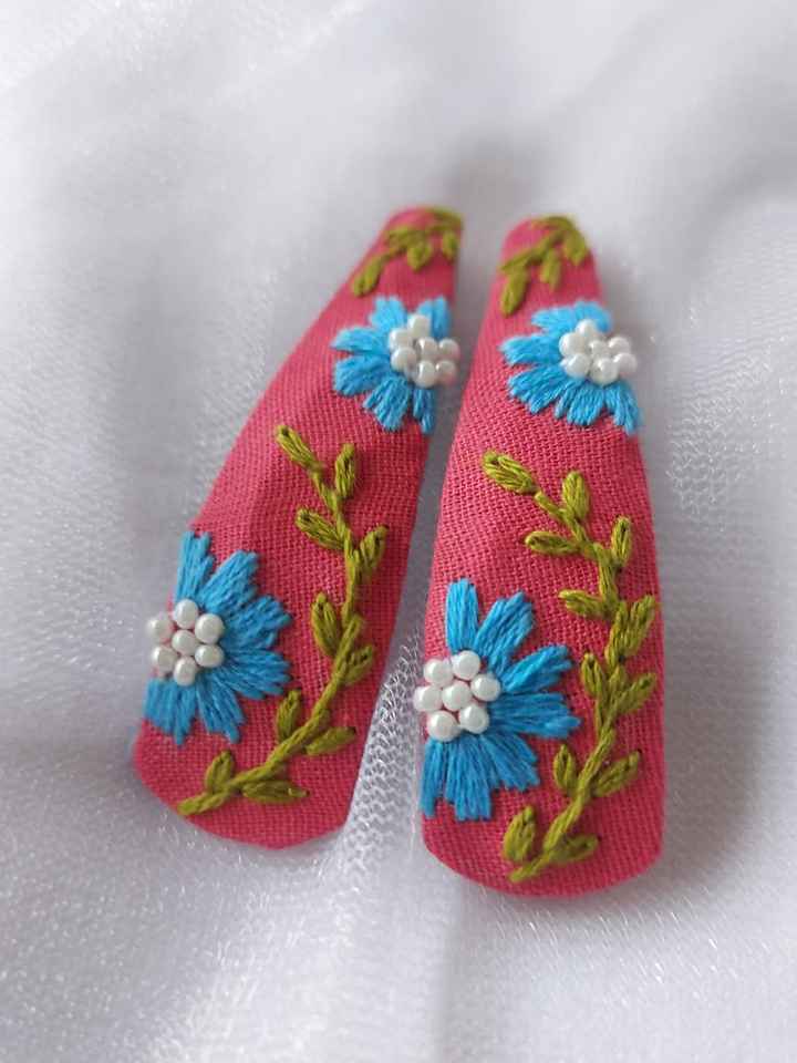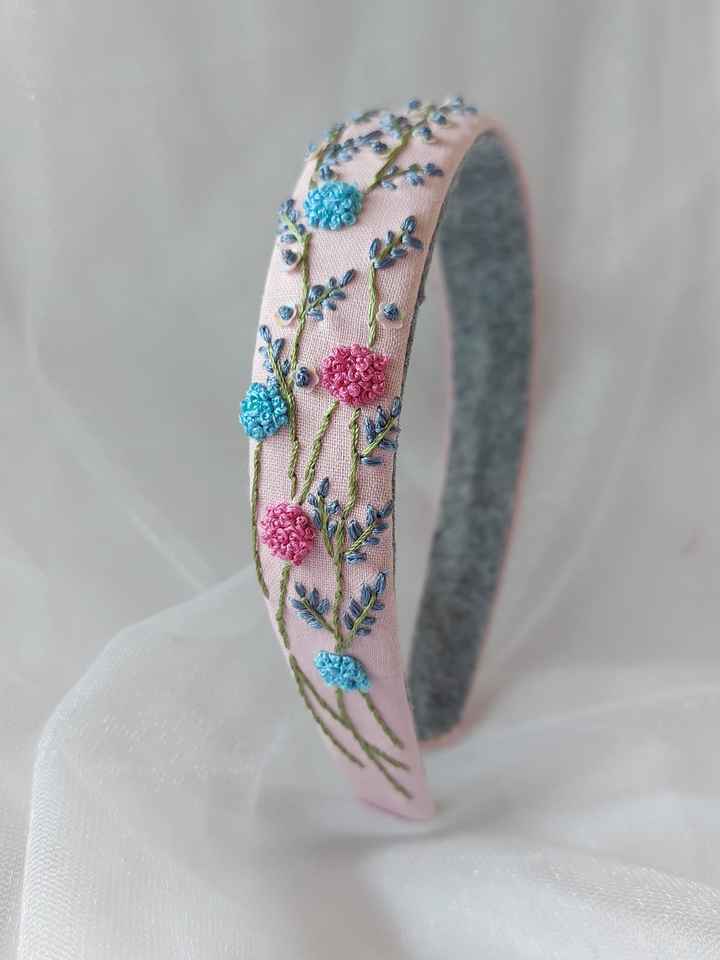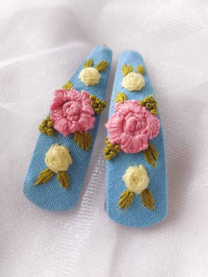 ผ้าลูกไม้ปักด้วยมือลายดอกไม้สีฟ้ามีหลากหลายลวดลายเหมาะสำหรับร้านขายเครื่องประดับผม