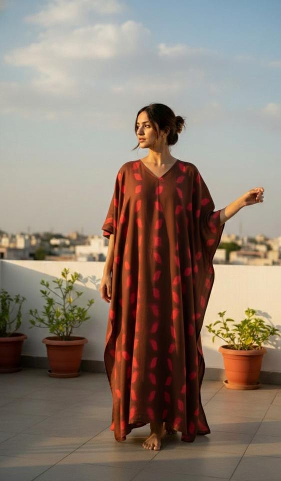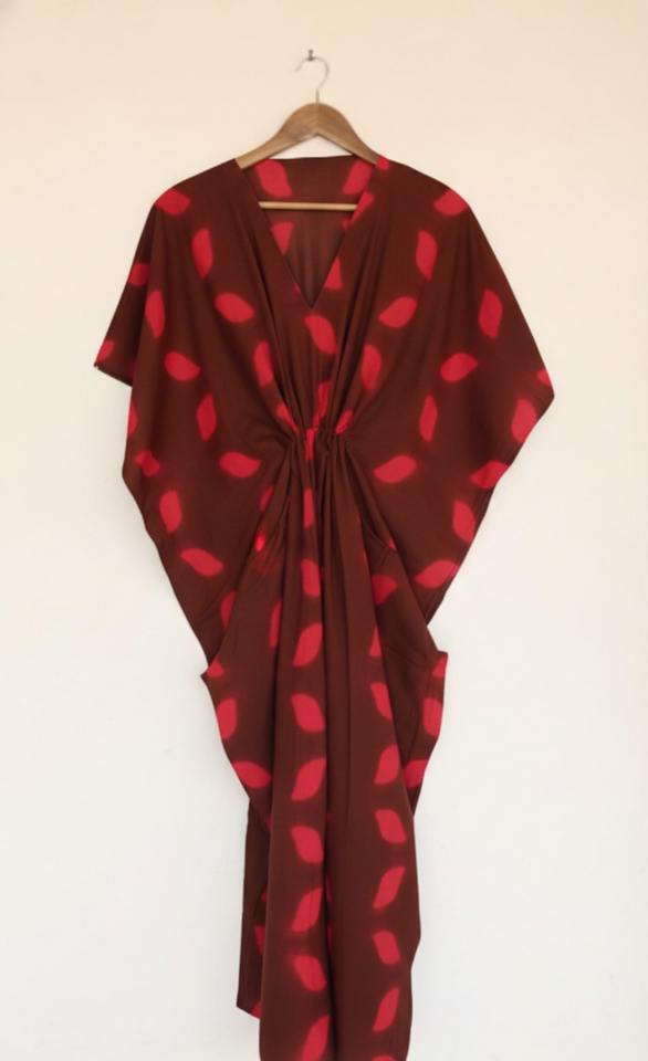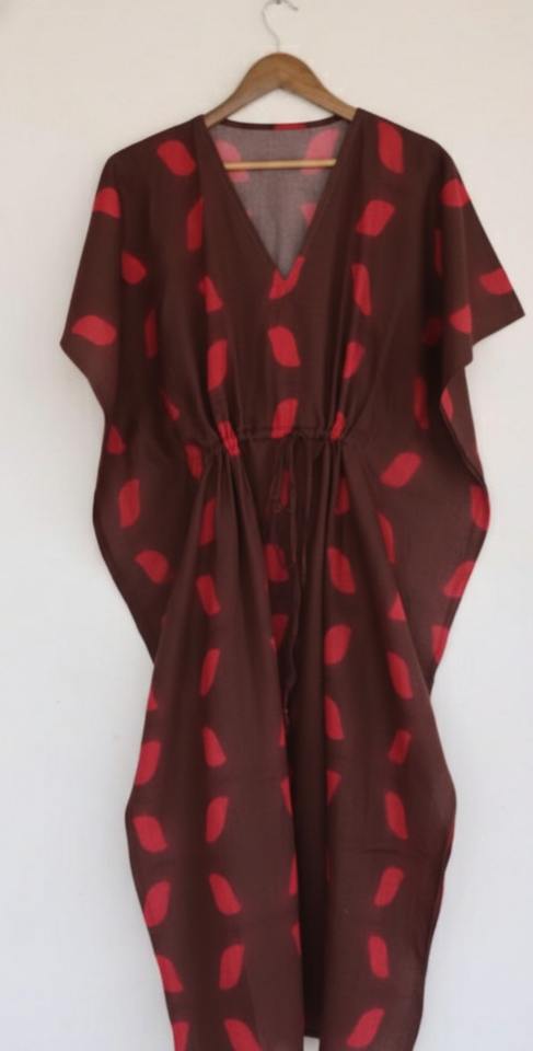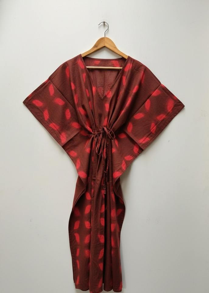 ชุดเดรสยาวแบบคาฟตันผ้าฝ้ายย้อมสีสไตล์โบฮีเมียนสั่งทำพิเศษ ซักได้ เป็นมิตรต่อสิ่งแวดล้อม คอวี พร้อมเชือกผูกสีตัดกัน สำหรับลูกค้าบูติก