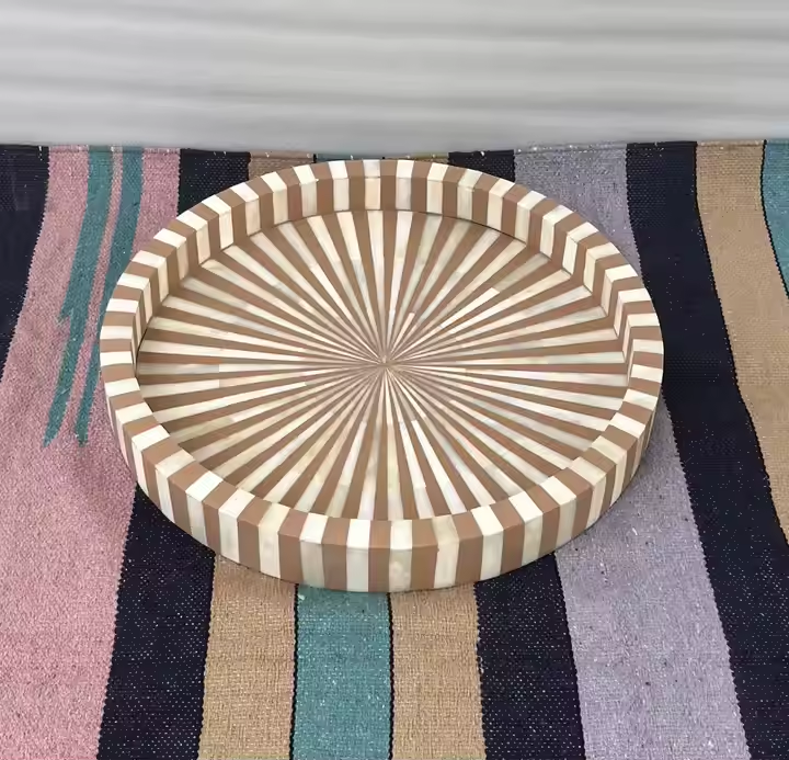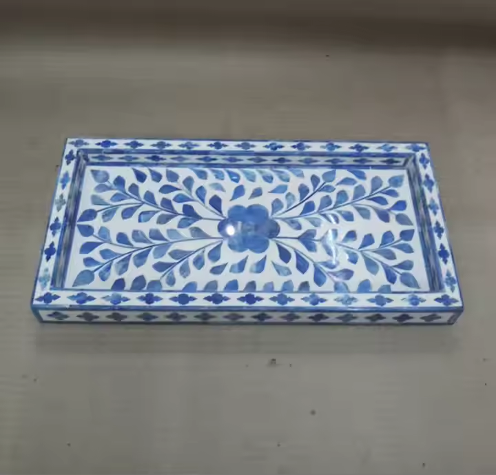 ถาดเสิร์ฟลายดอกไม้ทำจากกระดูกและแม่ของไข่มุกงานทำมือสำหรับตกแต่งบ้านด้วยงานฝีมือรูปพระจันทร์เสี้ยว