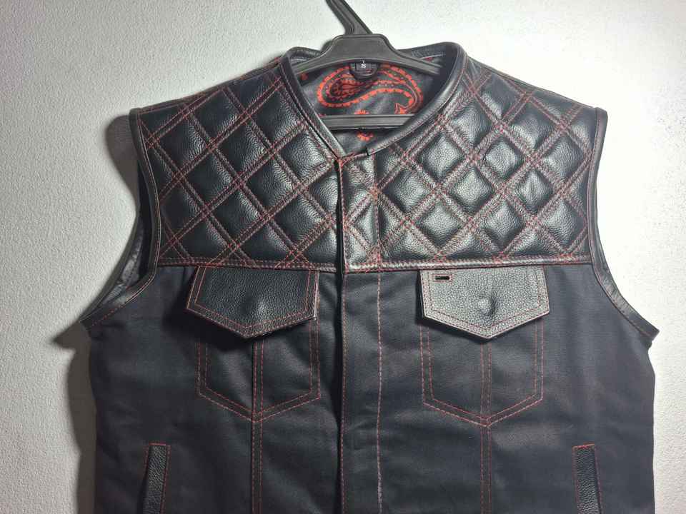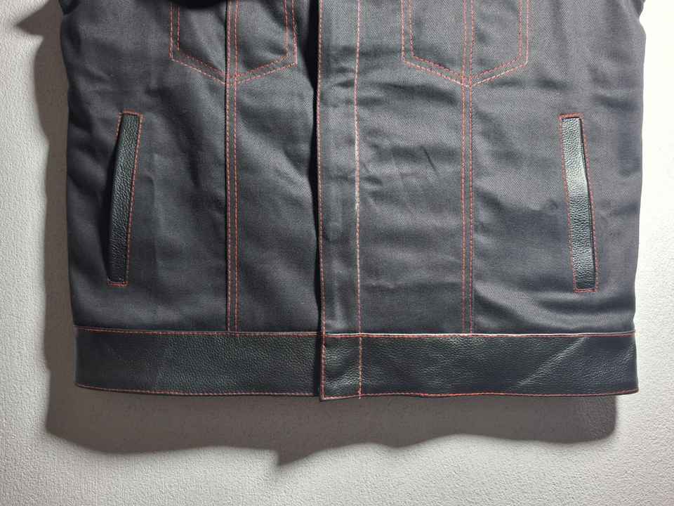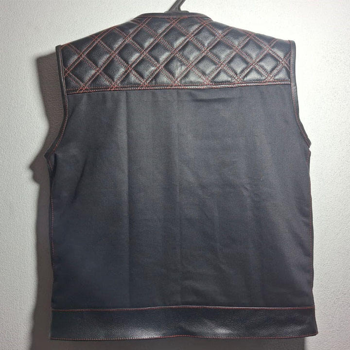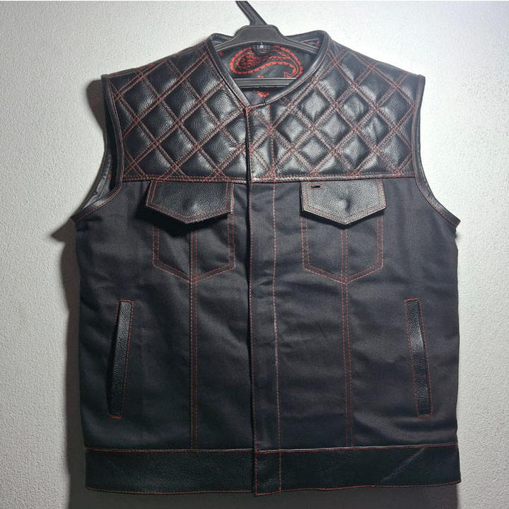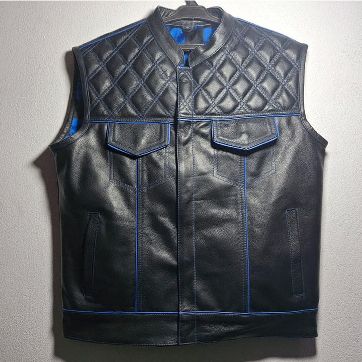 เสื้อกั๊กหนังขี่มอเตอร์ไซค์กันน้ำใส่ได้สองด้านสำหรับผู้ชายสไตล์อเมริกันทำด้วยมือสีสันสดใสงานตามสั่งสำหรับฤดูหนาว