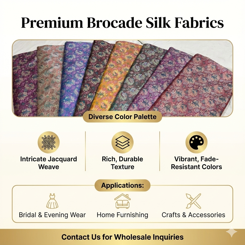 ผ้าไหมโบรเคดสั่งทำพิเศษ ลายดอกไม้ทอเส้นด้ายทองคำอย่างประณีต วัสดุระดับราชวงศ์ สำหรับชุดเจ้าสาวเลเฮนกาและชุดพื้นเมือง