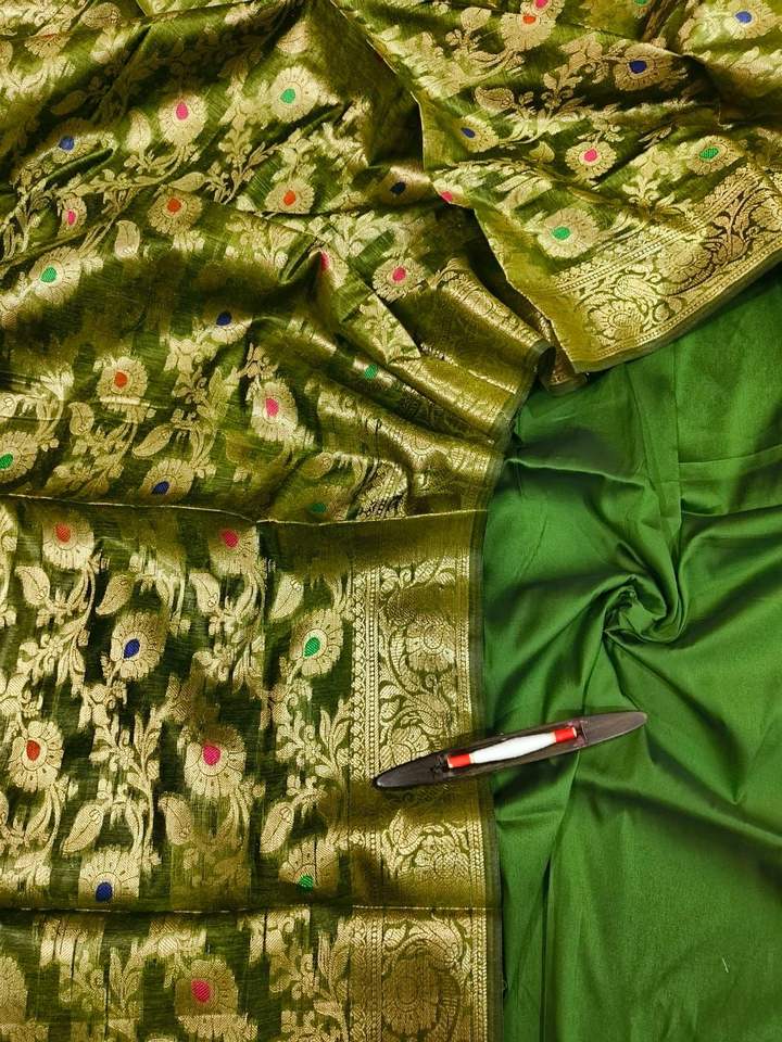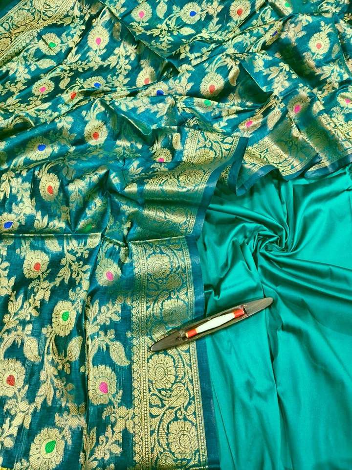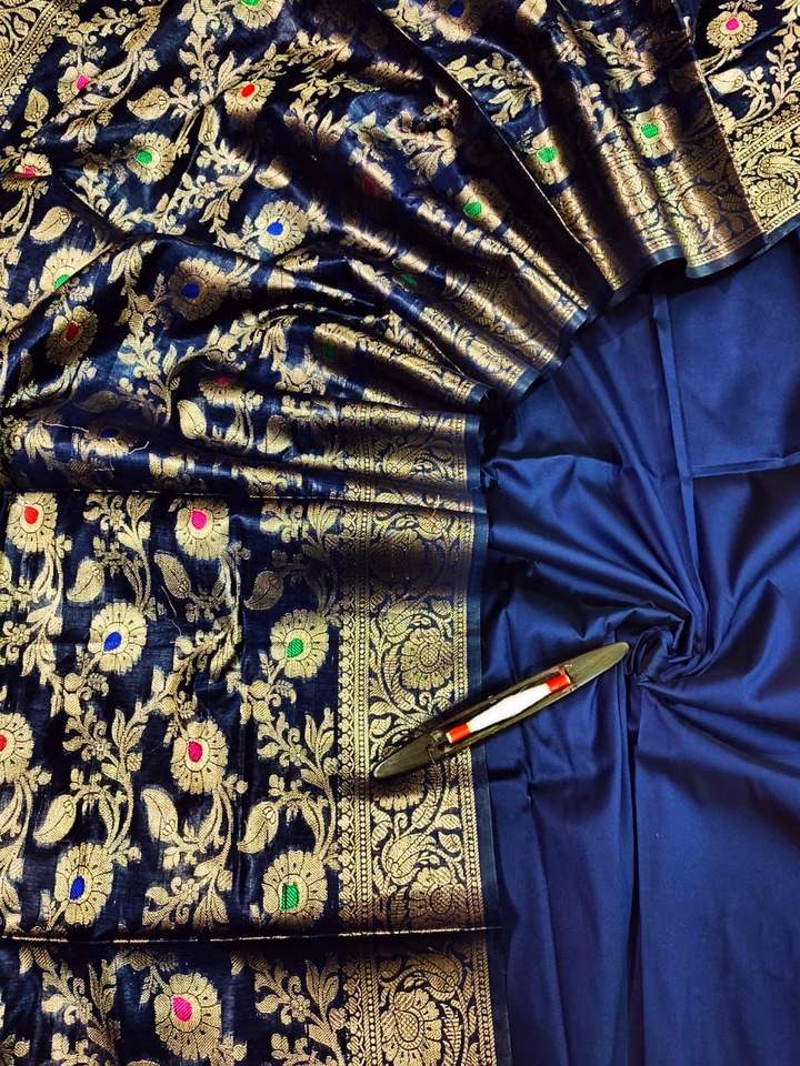 ชุดผ้าส่าหรีผ้าไหมทำจากผ้าไหมแท้100% มีขอบ zari สีทองเหมาะสำหรับการขายต่อจากร้านเสื้อผ้า