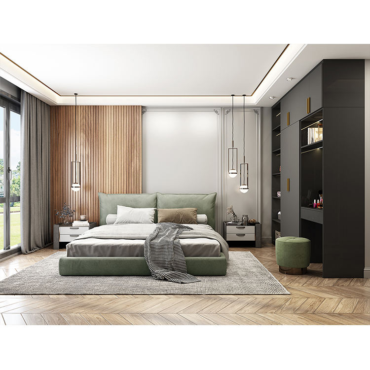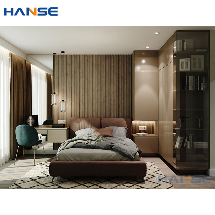 ตู้เสื้อผ้าบิวท์อินสั่งทำพิเศษ ดีไซน์ทันสมัย สำหรับบ้าน โรงแรม ห้องนอน เฟอร์นิเจอร์ตู้เสื้อผ้าแบบวอล์กอินพร้อมเตียง