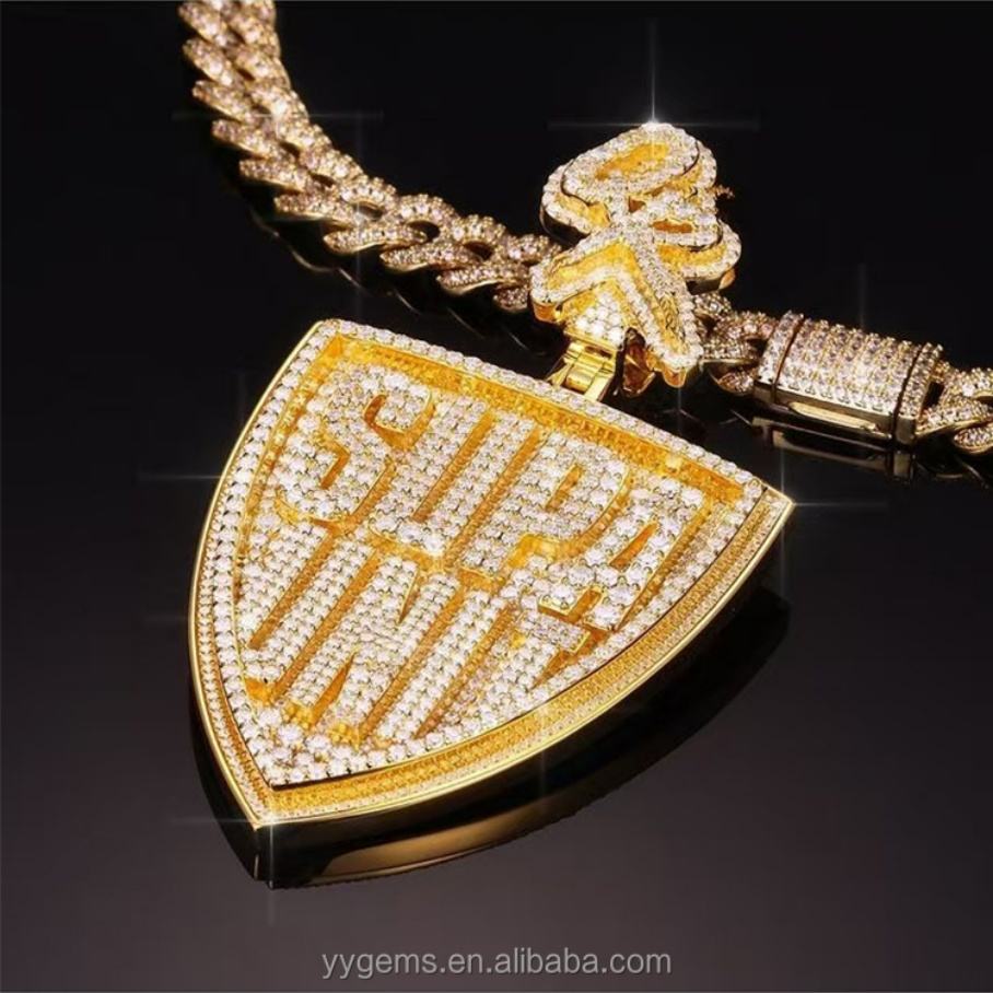 จี้ห้อยคอสั่งทำพิเศษ ประดับเพชรเต็มเม็ด โมอิสซาไนต์ เงินแท้ 925 ชุบทอง 18k สไตล์ฮิปฮอป