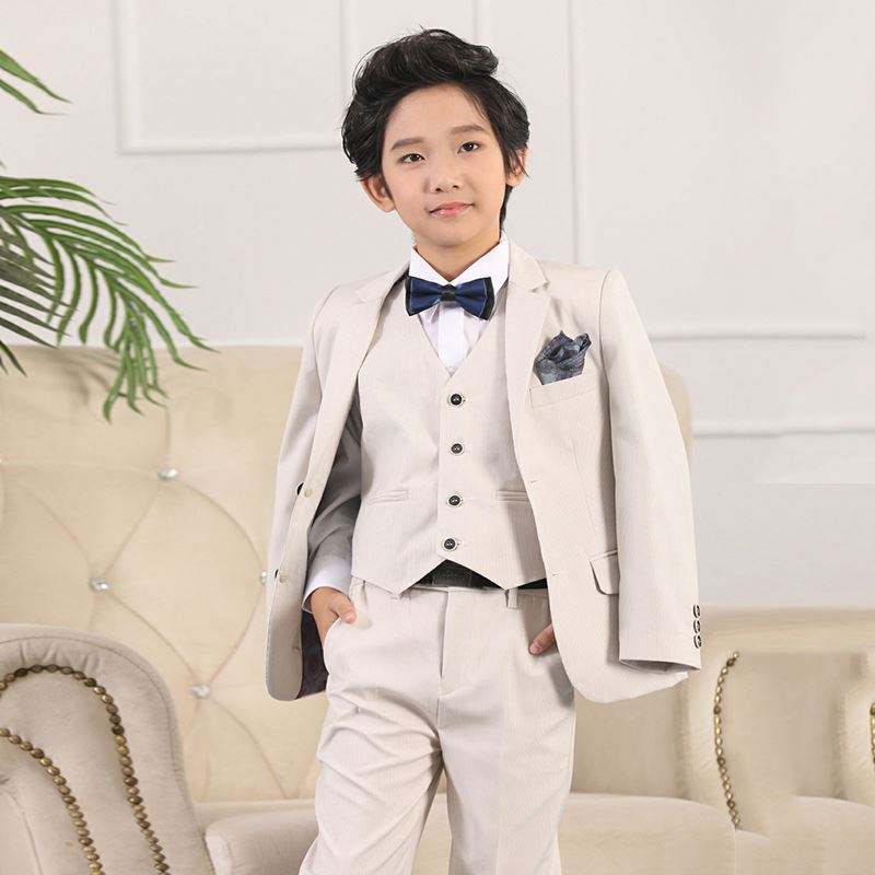 ชุดเด็กสั่งตัด ชุดสูทเด็กผู้ชายสไตล์เกาหลี สีขาว ชุดสูทเด็กสำหรับงานพิธีการ