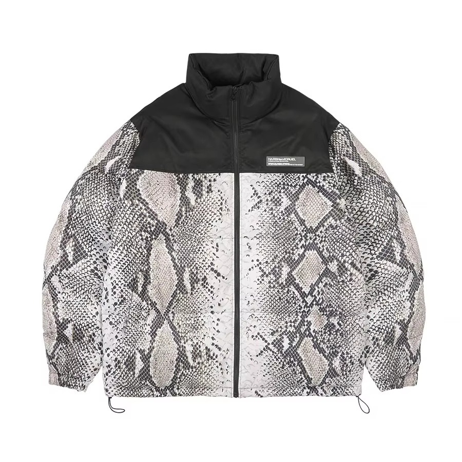 เสื้อแจ็คเก็ตพัฟเฟอร์ลายหนังงูสำหรับเด็กแบบสั่งทำพิเศษ OEM ODM อุ่น กันน้ำ กันลม ระบายอากาศได้ดี สำหรับฤดูหนาว