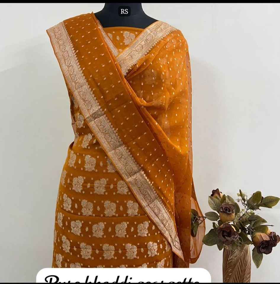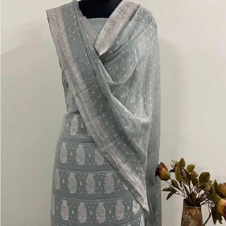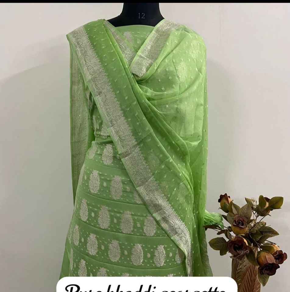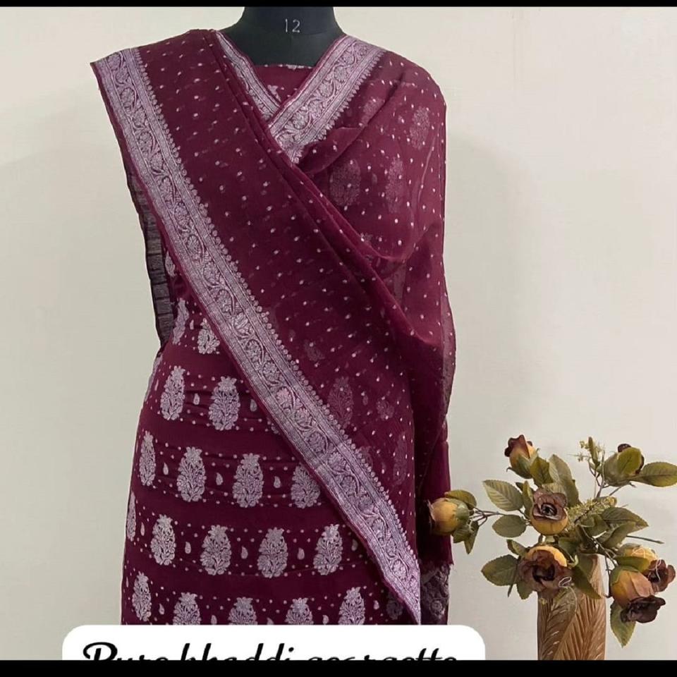 Choli ผ้าจอร์เจียแท้หรูหราผ้าทอมือที่สง่างามพร้อมงาน zari เงินเหมาะสำหรับงานแต่งงานและปาร์ตี้