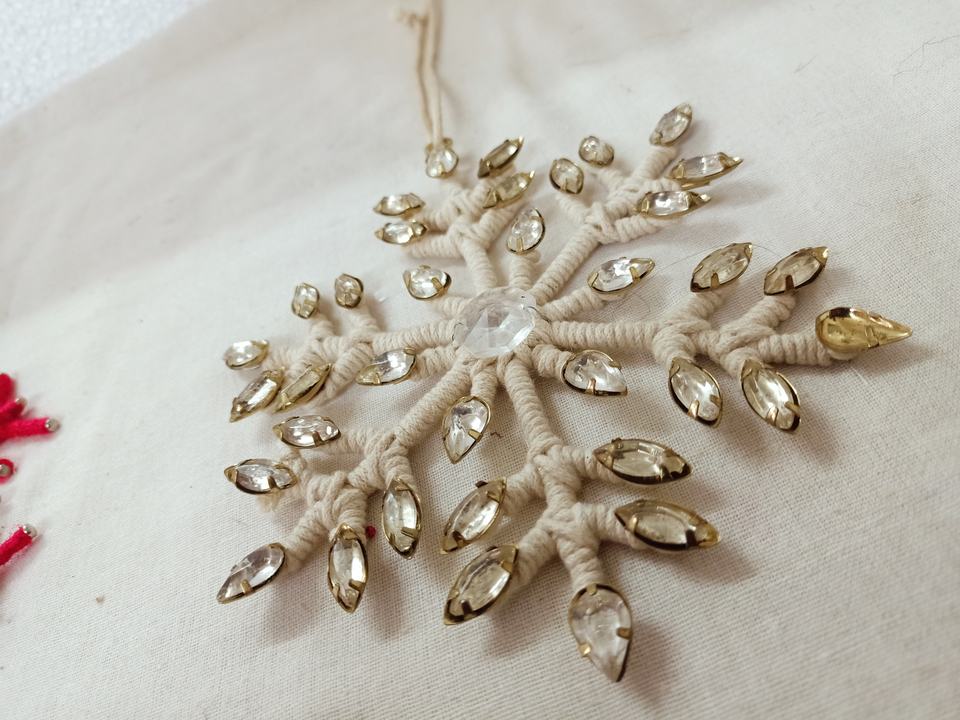 ตกแต่งต้นคริสต์มาสแบบกำหนดเองด้วยลวดลายเกล็ดหิมะทำด้วยลูกปัดแก้วเหมาะสำหรับร้านอุปกรณ์คริสต์มาส