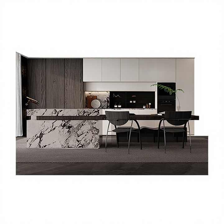 ชุดตู้ครัวบิลท์อินอะคริลิคไม้เคลือบลามิเนตสองด้านแบบโมเดิร์นสั่งทำพิเศษ พร้อมบานพับสำหรับบ้านสำเร็จรูป