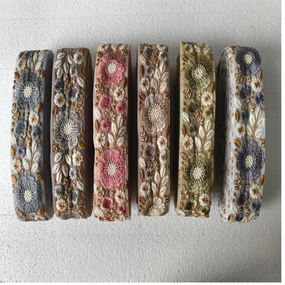 ริบบิ้นออร์แกนซ่าปักลายดอกไม้แบบคลาสสิกสั่งทำพิเศษ ผ้าฝ้าย 100% เป็นมิตรกับสิ่งแวดล้อม สำหรับตกแต่งเสื้อผ้าสตรี รุ่น Six