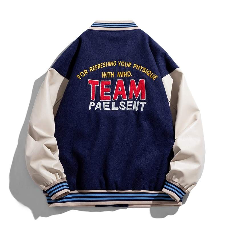 เสื้อแจ็กเก็ตเบสบอลของผู้ชาย,เสื้อโค้ทเบสบอลปักลายตัวอักษรตามสั่งสไตล์วิทยาลัย