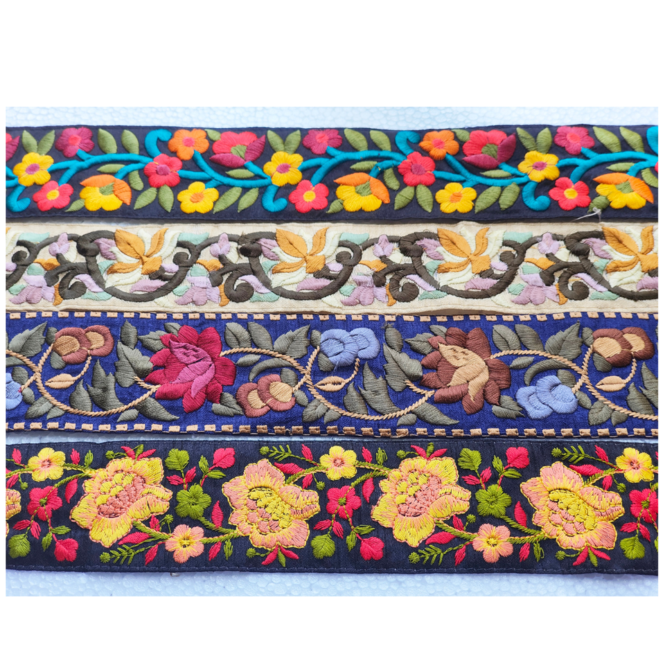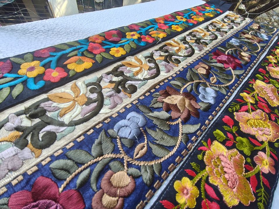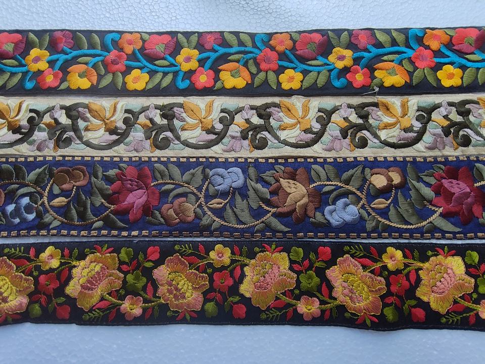 ลูกไม้ปักลายดอกไม้สีสันสดใสสั่งทำพิเศษ พร้อมพู่ตกแต่งขอบ ดีไซน์ระดับพรีเมียม เหมาะสำหรับลูกค้าร้านบูติกและผู้ค้าปลีก